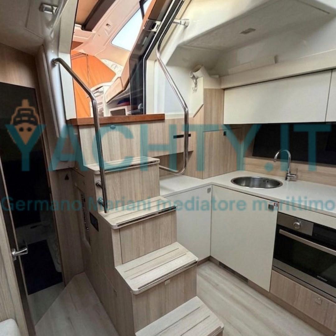 Chargeur de batterie, douche sur le pont, propulseur d’étrave, garage tender (logement ouvrant électriquement 2 m), toit rigide avec mécanisme de toit souple électrique (remplacé en 2024), passage hydraulique rétractable, cockpit en teck, prise d’amarrage 220V, table de cockpit, générateur, unité de climatisation dans la cabine, nouvelle sellerie extérieure 2025, cabines et cockpit à système TV, pilote automatique, traceur de cartes VHF Raymarine.