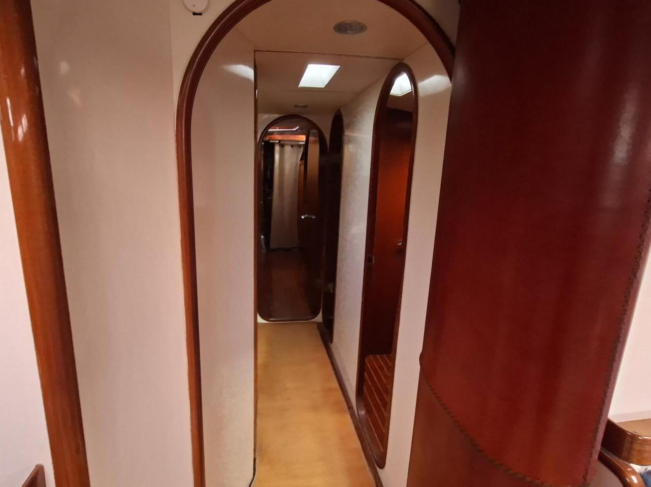 Grande cabine propriétaire à l’arrière accessible par une coursive à tribord avec salle d’eau privative équipé d’une douche, d’un lavabo et d’un toilette électrique a eau douce