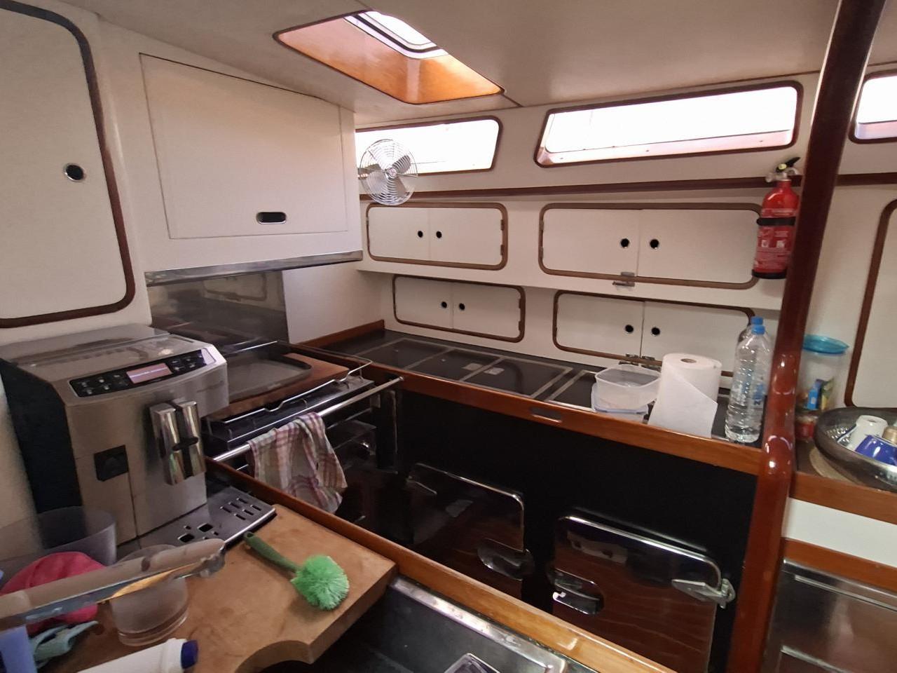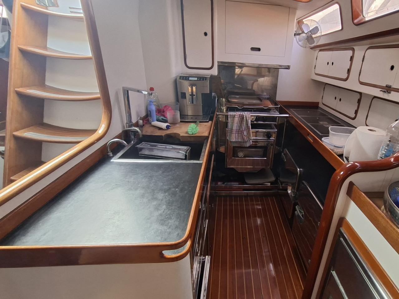 Cuisine fonctionnelle en U à bâbord adaptée à la navigation hauturière