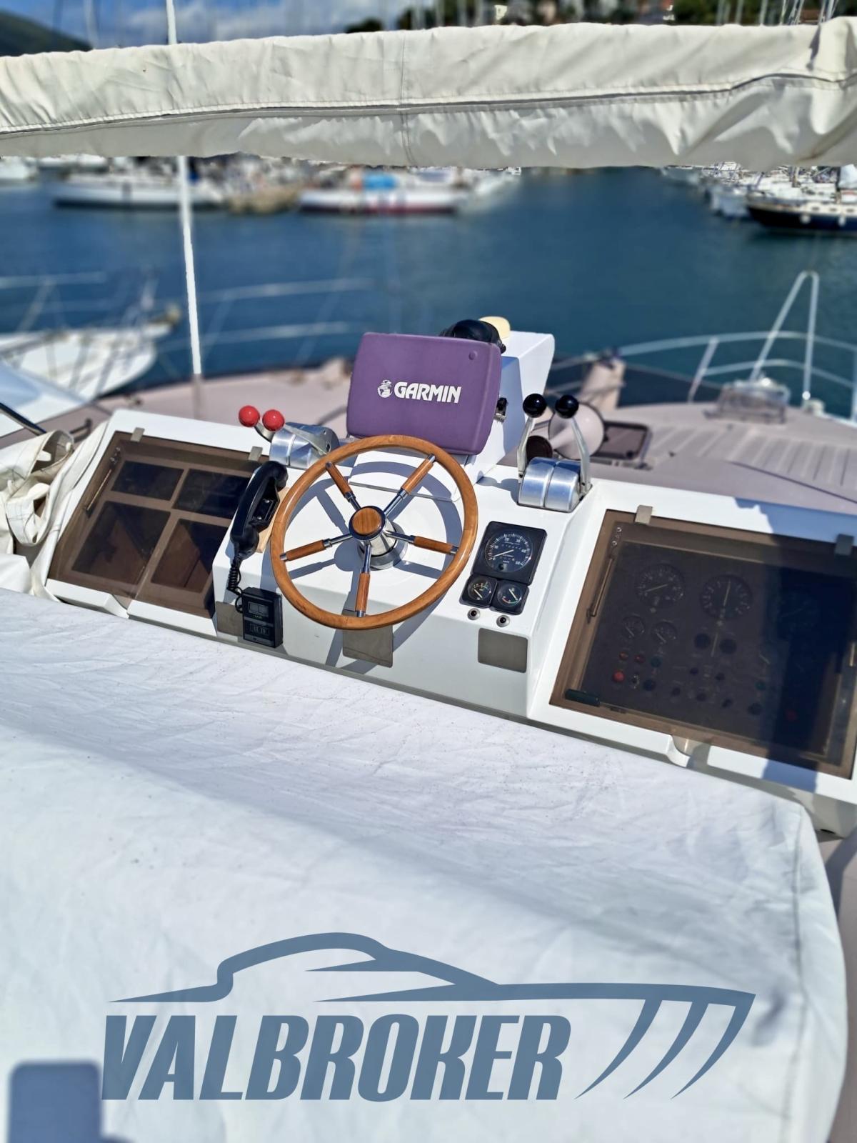 Raffaelli Storm S construit en 1989 par le célèbre chantier naval italien. Propulsé par 2 x 375hp Caterpillar, diesel, SHAFT LINE. Bien équipé avec générateur Dynamica mini 80, climatisation, cockpit en teck
