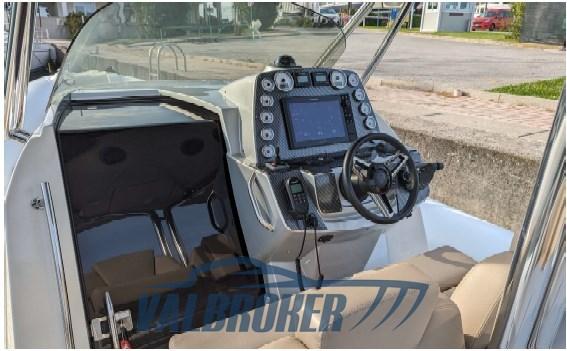 Taquets d’amarrage, rouleau en fibre de verre, volant Zulag Isotta, feux de navigation à LED, gonfleur électrique, système de carburant avec préfiltres et réservoir, tableau de bord en fibre de carbone, TOP sport en fibre de carbone et acier