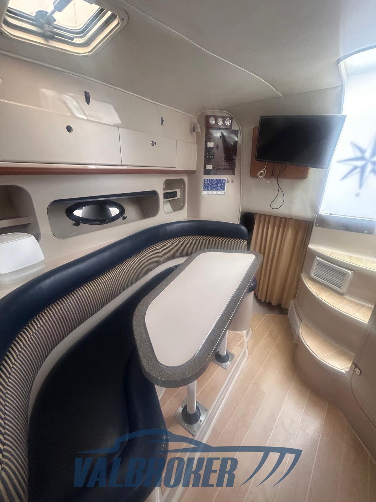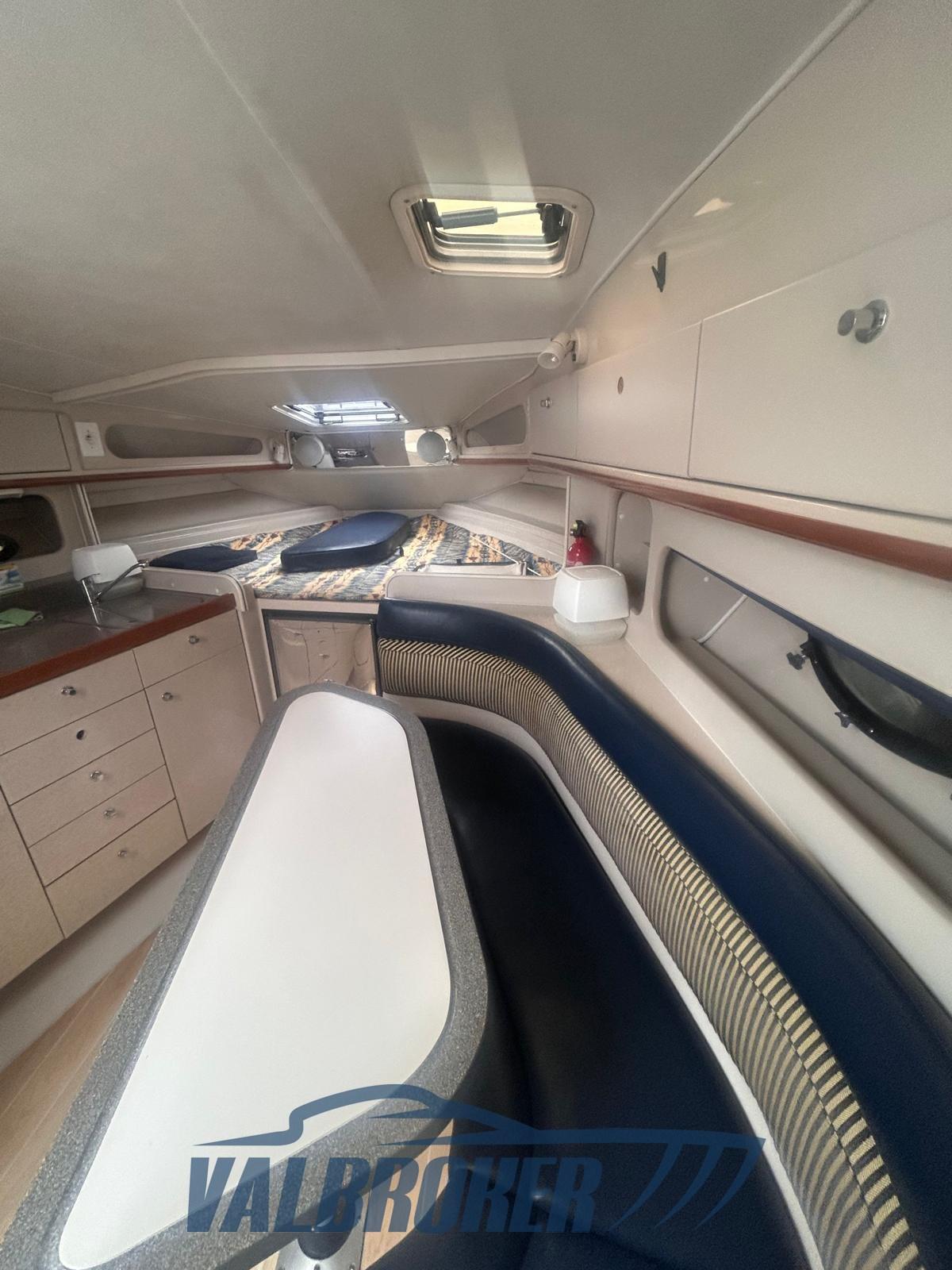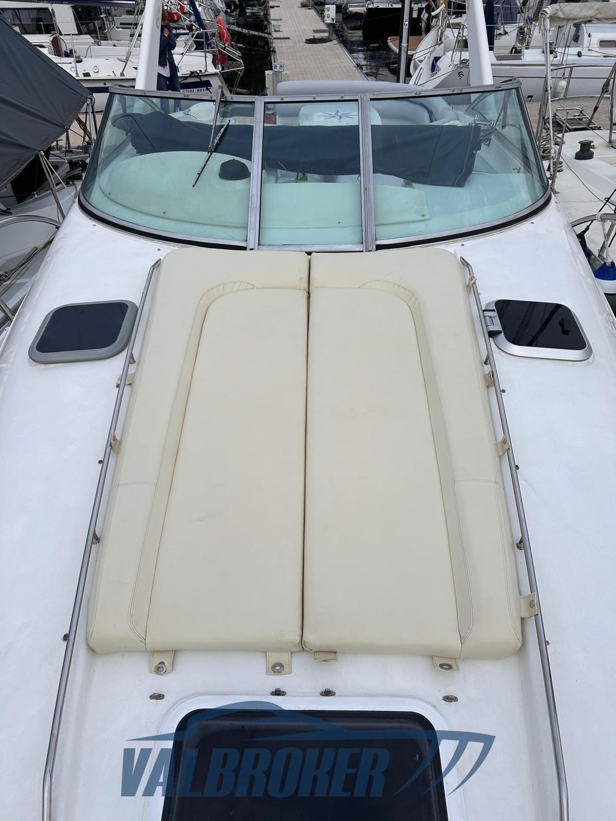 Croiseur express canadien connu pour son grand cockpit et son design sportif. Propulsé par deux moteurs V6 essence 4.3 Mercruiser. Les moteurs ont été reconditionnés et mis à zéro heure. 2024 : révision complète des transmissions, remplacement des anodes. Traitement anti-osmose et antifouling.