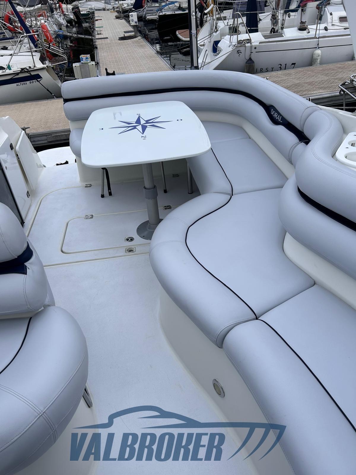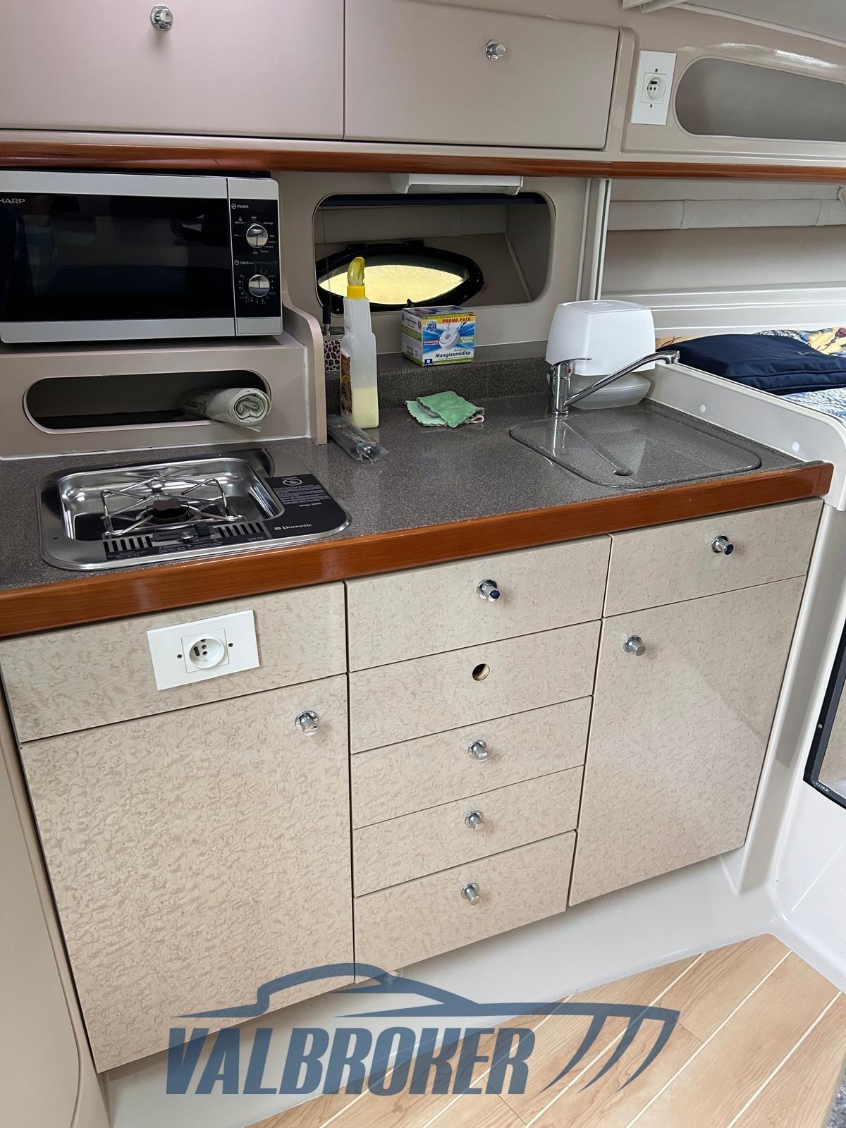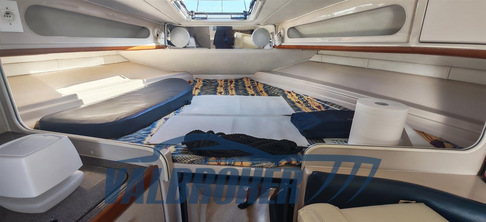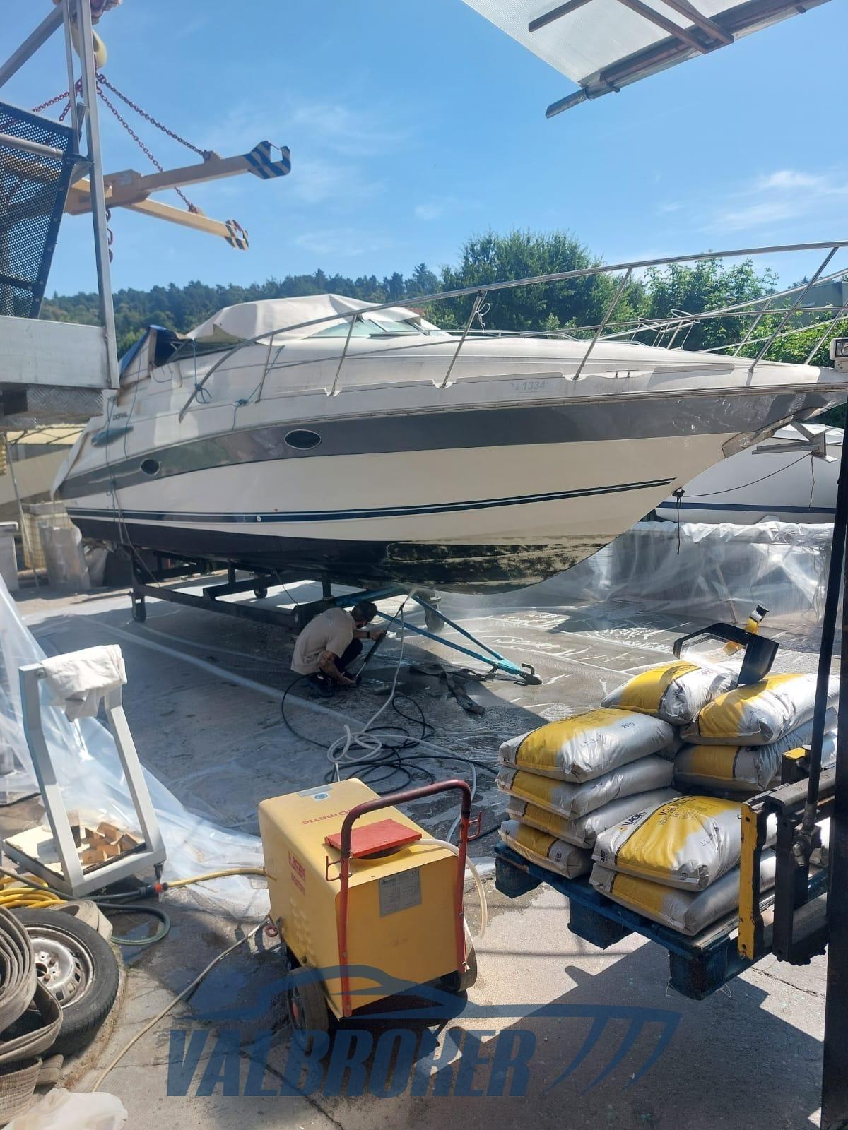 Croiseur express canadien connu pour son grand cockpit et son design sportif. Propulsé par deux moteurs V6 essence 4.3 Mercruiser. Les moteurs ont été reconditionnés et mis à zéro heure. 2024 : révision complète des transmissions, remplacement des anodes. Traitement anti-osmose et antifouling.