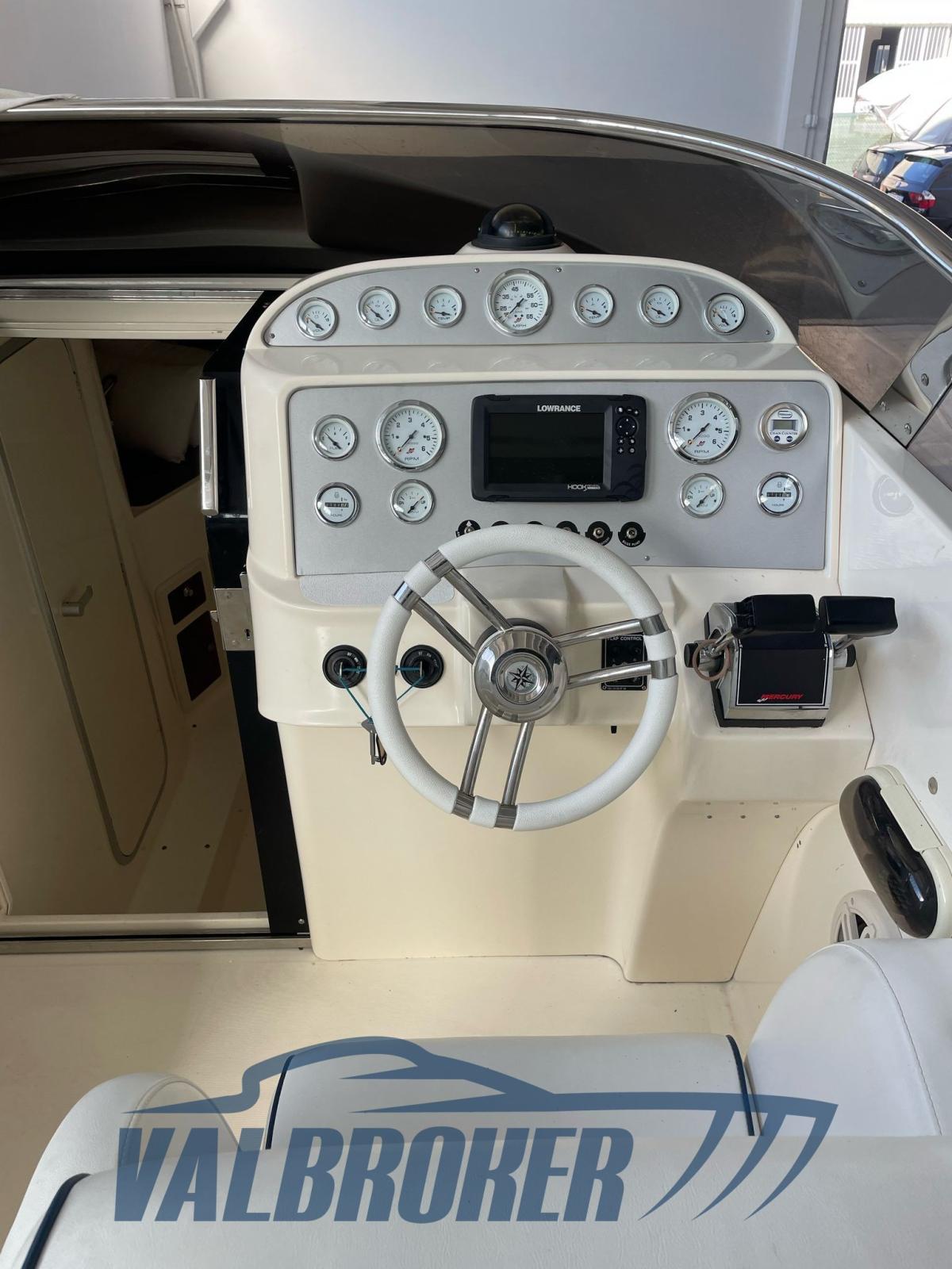 Coque solide, sportive et robuste, synonyme de haute qualité de construction et d’élégance. Bain de soleil fixe à l’arrière. Propulsé par 2x350 Mercury Magnum V8 EFI/Mp Bravo I essence.