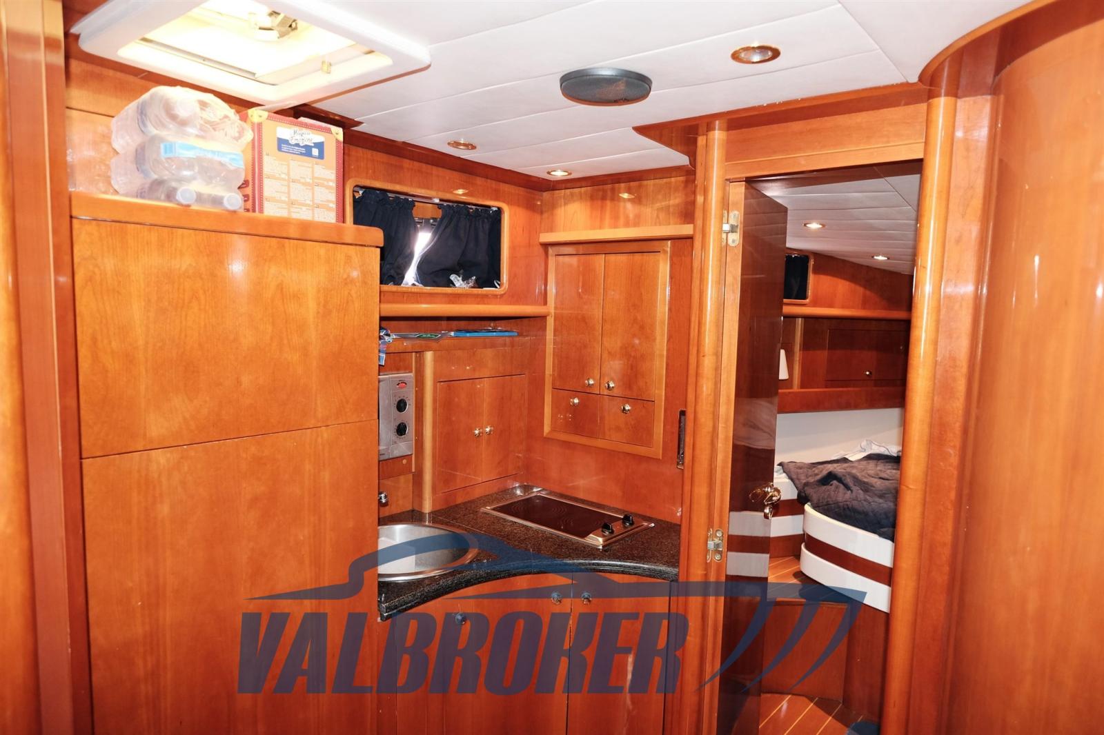 Cuisine intérieure et kitchenette avec cuisinière et évier dans le cockpit. Climatisation, groupe électrogène, propulseur d’étrave, passerelle hydraulique, radar, pilote automatique.