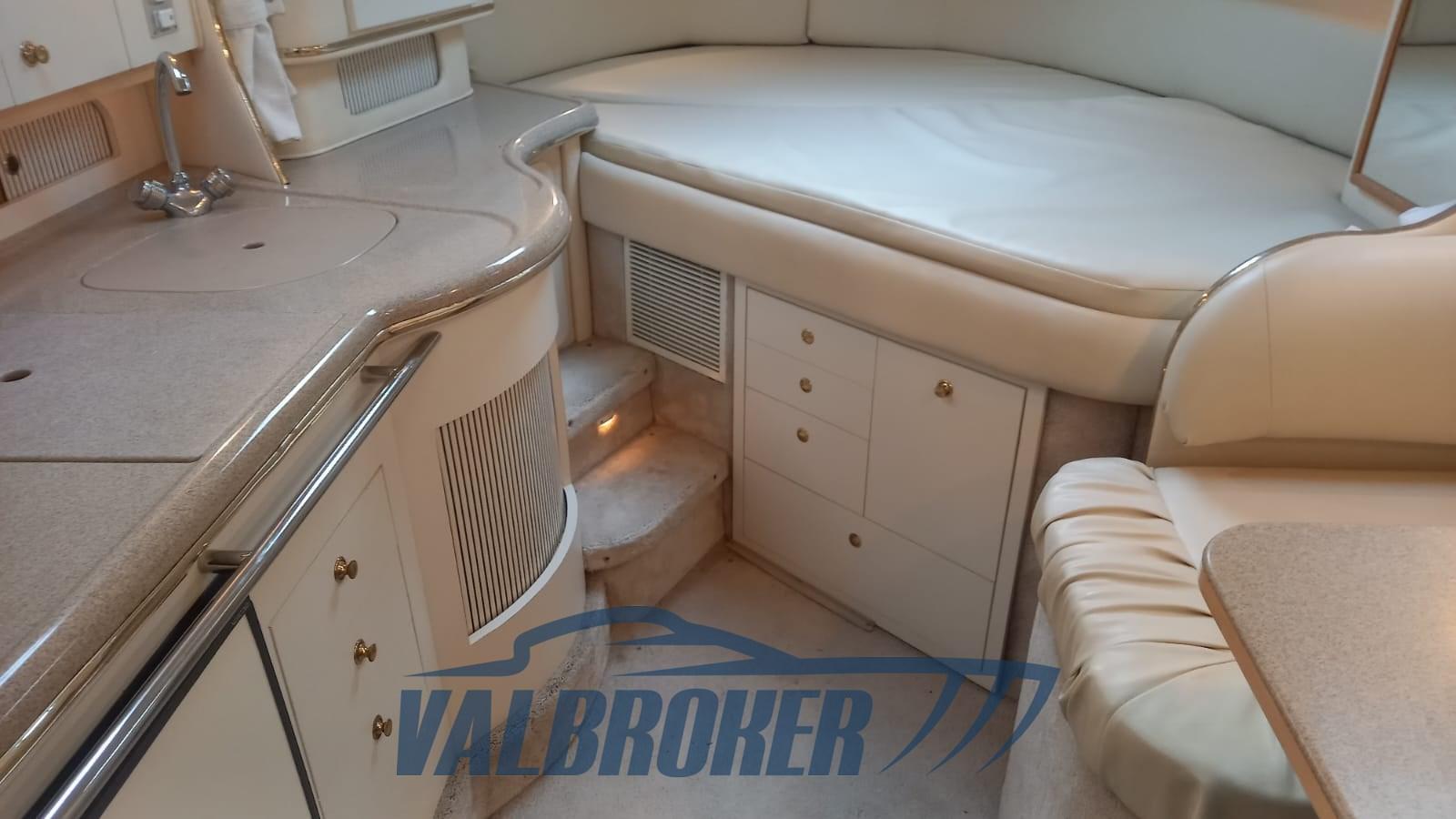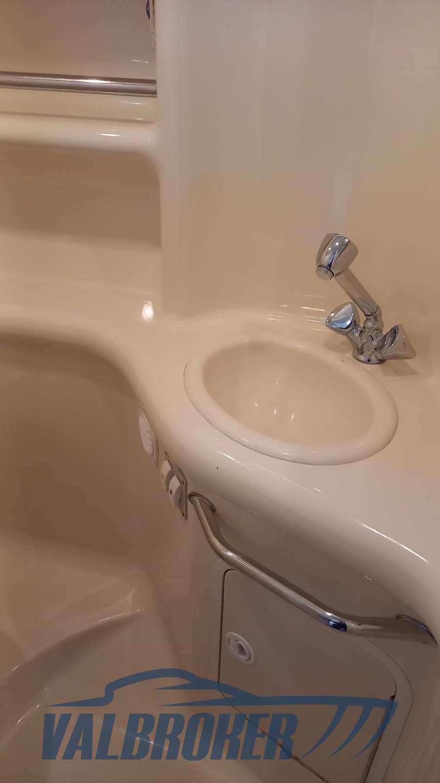 Chantier naval américain avec une ligne sportive, un grand cockpit et des espaces intérieurs généreux. Hauteur complète de la cabine, intérieur impeccable. 2 Mercruiser MAG 350 V8 à entraînement à arbre essence avec entraînement en V. Visible sur le lac Majeur à la Marina di Pallanza. Le bateau n’est pas plaqué. Lit double à la proue, couchette à la poupe et toilettes séparées.