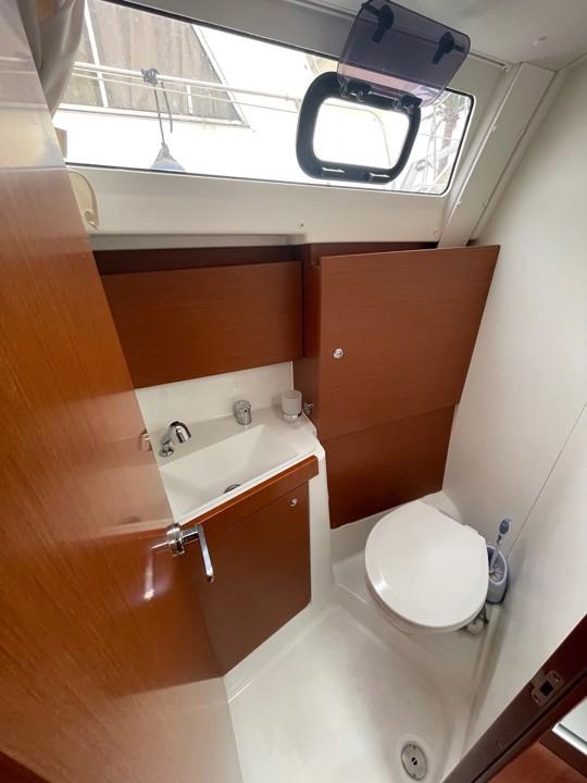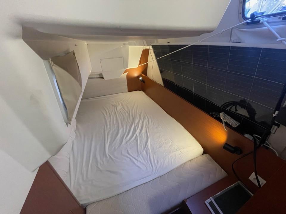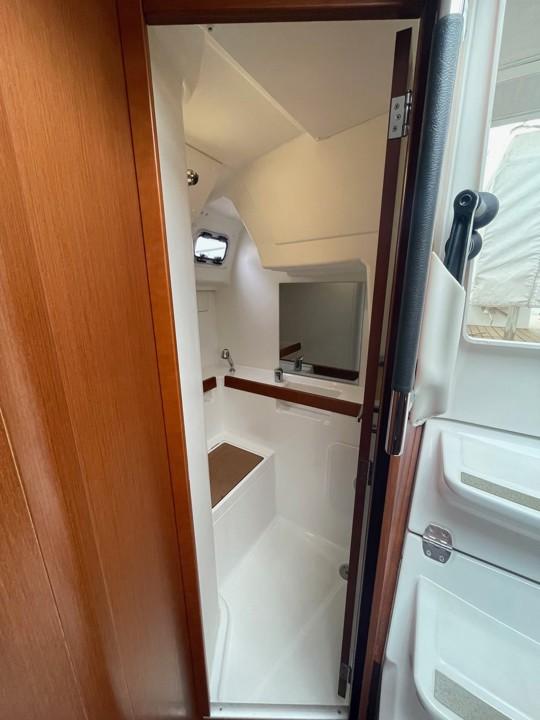 Côté navigation, le gréement simple et efficace ainsi que les équipements (génois sur enrouleur, électronique, pilote automatique, propulseur d’étrave) permettent une prise en main rapide et sécurisante, idéale pour les navigations côtières comme pour des croisières plus ambitieuses.
