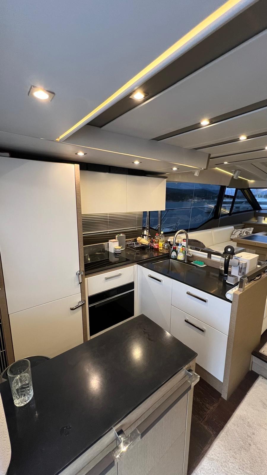 Ce navire élégant paraît rapide, mais l’accent est mis sur le confort de croisière. Deux Volvo Penta IPS 950 lui confèrent une vitesse maximale respectable de près de 30 nœuds avec une excellente réponse des gaz et une sensation sportive, bien que le bateau soit silencieux à l’intérieur comme à l’extérieur.