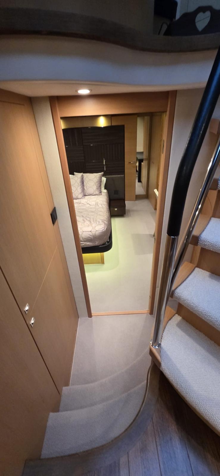 les garnitures extérieures ont été renouvelées en 2023, les écrans Raymarine ont été remplacés en 2016 et la climatisation complète a été entièrement révisée en 2022. Le bateau dispose de trois cabines spacieuses, chacune avec sa propre salle de bain attenante. La cabine principale occupe toute la largeur de la
