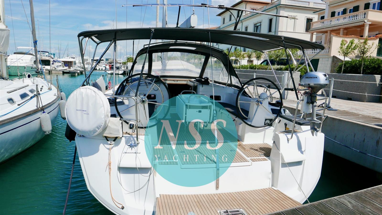 Alarme moteur, Alarme de pompe de cale, Ancre (Delta 25 kg con 80 mt catena da 10 mm), Eau sous pression, Double barre à roue, 2 Panneau solaire (100 Wx2), Passerelle (in composito Carbonautica), Plateforme arrière, Pompe de cale manuelle, Cockpit en teck, Prise de quai, Guindeau électrique, Echelle de bain, table de cockpit, Annexe (Honda wave 3 mt, Honda 2,5 hp), Windex.