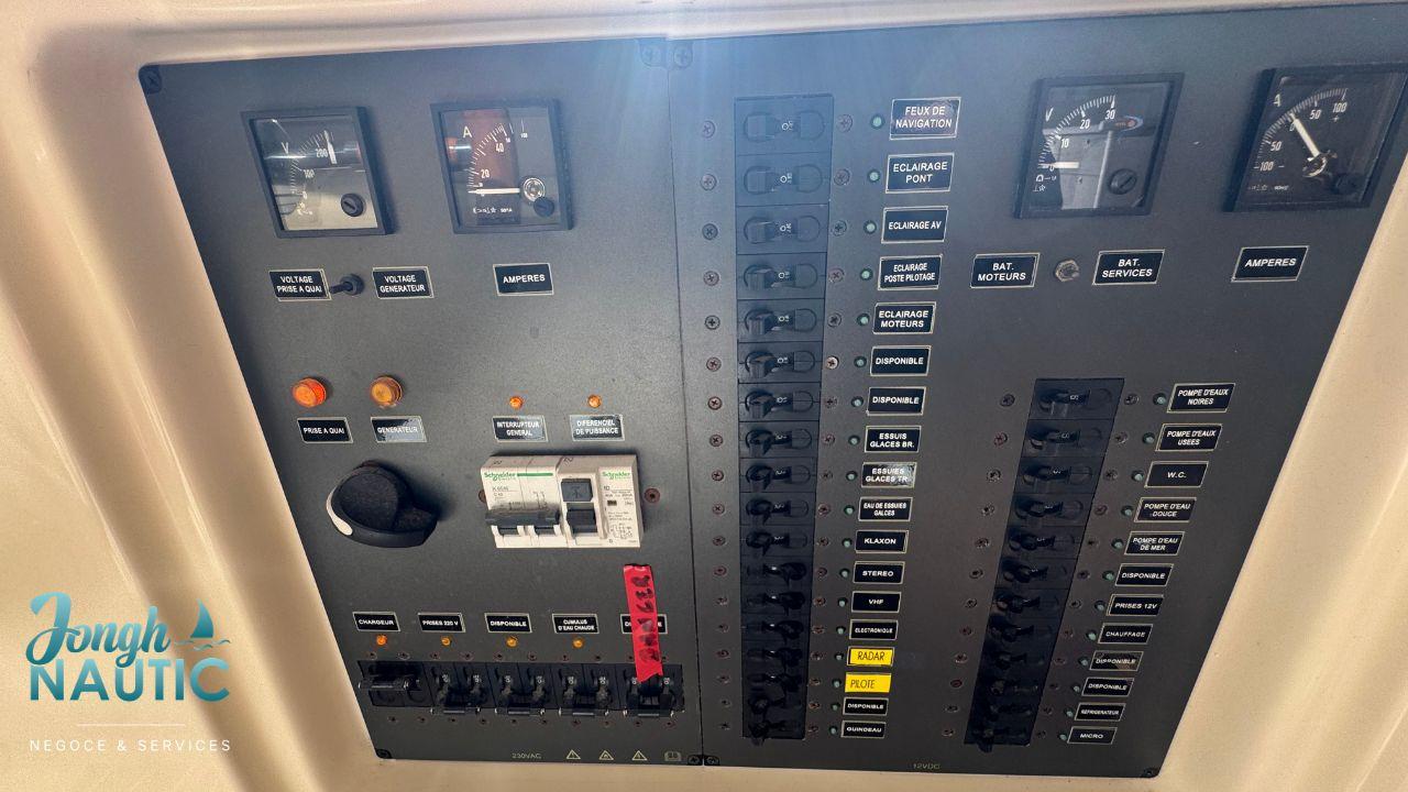 Très belle électronique dédiée à la pêche au gros : installation performante et adaptée aux sorties exigeantes (sondeur, GPS, équipements spécialisés).