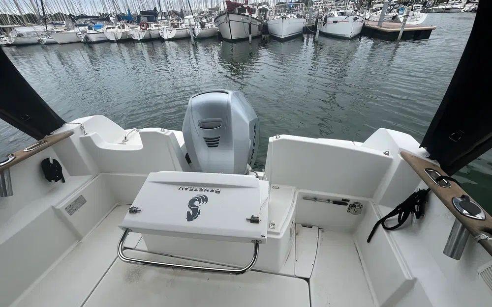 Jusqu’à 8 personnes à bord peuvent profiter des banquettes extérieures, du cockpit convivial agrémenté d’une table, et du réfrigérateur pour garder au frais vos boissons préférées pendant que la pêche bat son plein grâce aux porte-cannes. Pour la détente, la cabine propose 4 couchages, un évier, une salle de bain fonctionnelle et même des WC marins. Bref, tout ce qu’il faut pour prolonger le plaisir sur plusieurs jours !