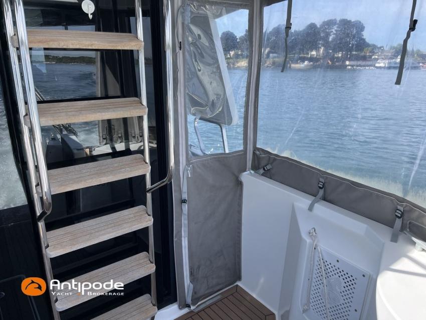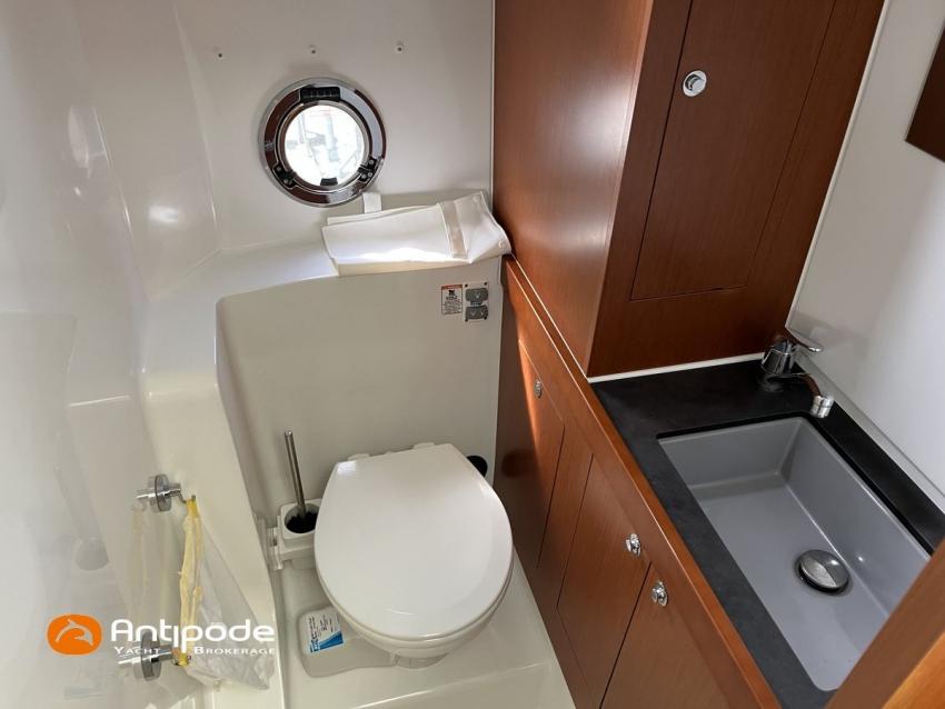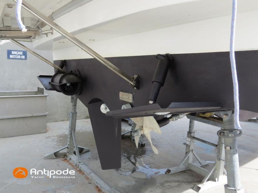 SWIFT TRAWLER 30, 1 ère main, 2017, 1 ère immatriculation 2018, VOLVO D6, 370 cv (539 h), Propulseurs d'étrave et poupe, Version d'aménagement intérieur avec 1 cabine avant et grand compartiment douche indépendante à babord, 1 cabinet de toilette à tribord, Canapé du carré convertible en lit double, Rideaux intérieurs de timonerie, Support radeau de survie flying bridge, Balcons et chandeliers de flying bridge modifiés pour être surbaissés si besoin, Guindeau électrique avec contrôle timonerie et flying bridge, Flaps électriques, Bossoirs inox, Revêtement type flexiteek dans le cockpit, sur le passavants babord et sur la plateforme de bain arrière, Portes arrières de cockpit ouvrantes, avec 2 sièges rabattables, Bimini flying bridge, Coussins d'assises et dossiers de flying bridge, Tauds de fermeture arrière complète du cockpit, Pilote automatique in board Raymarine, Double commande pilote (timonerie et flying bridge), GPS / lecteur de carte à la timonerie - Raymarine Hybrid touch, GPS / lecteur de carte flying bridge, Cartographie électronique, Transpondeur AIS (émetteur récepteur), VHF - Navicom, Télévision dans le carré, Unité réfrigérante 12 V porte frontale, Chauffe-eau 220 V + échangeur, Eau chaude et froide sous pression, Gazinière 2 feux + four, Prise de quai 220 V + chargeur de batteries, Convertisseur 12 V / 220 V, Chauffage WEBASTO, Réservoir rigide eaux noires, WC électrique, Douchette de cockpit eau chaude / eau froide, Radeau de survie (révisé 2026), Mouillage principal ancre DELTA, Amarres et défenses, carénage + antifouling + entretien moteur Avril 2026. Visible Bretagne. Pour plus d'informations ou pour fixer un rendez-vous de visite, contact : Jérôme Le Joubioux 06 07 45 71 73 - [email protected]