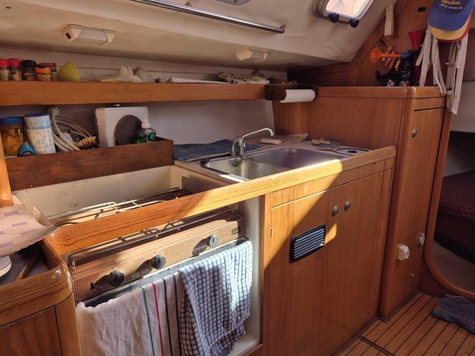 Doté d’une voilure de 57 m², d’un tirant d’eau d’environ 1,90 m et d’une carène efficace, c’est un croiseur rapide, équilibré et très agréable à barrer. Son moteur diesel Yanmar 28 ch assure une manœuvrabilité impeccable au port et une navigation sereine.