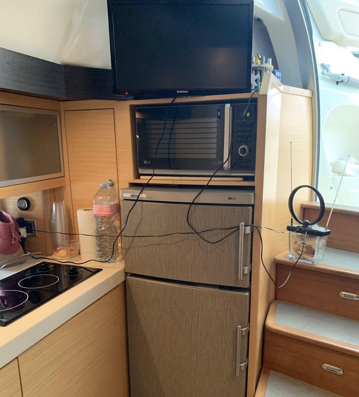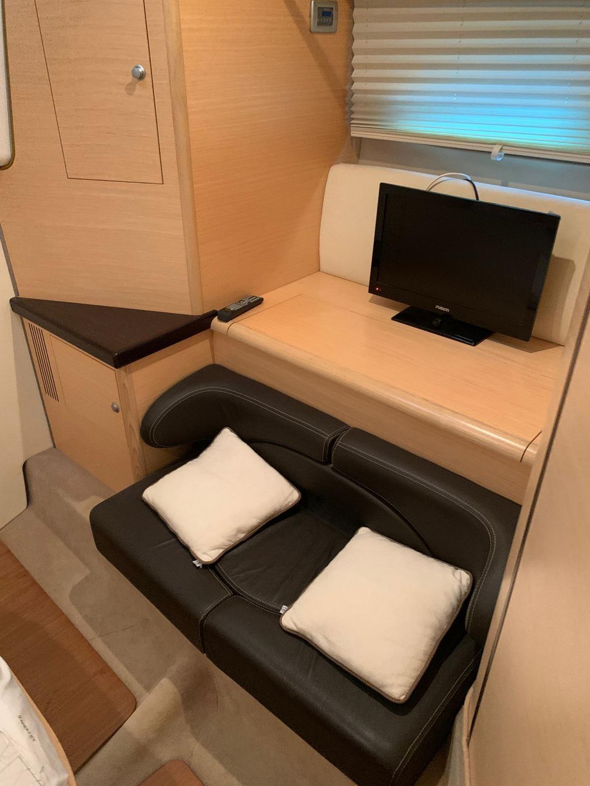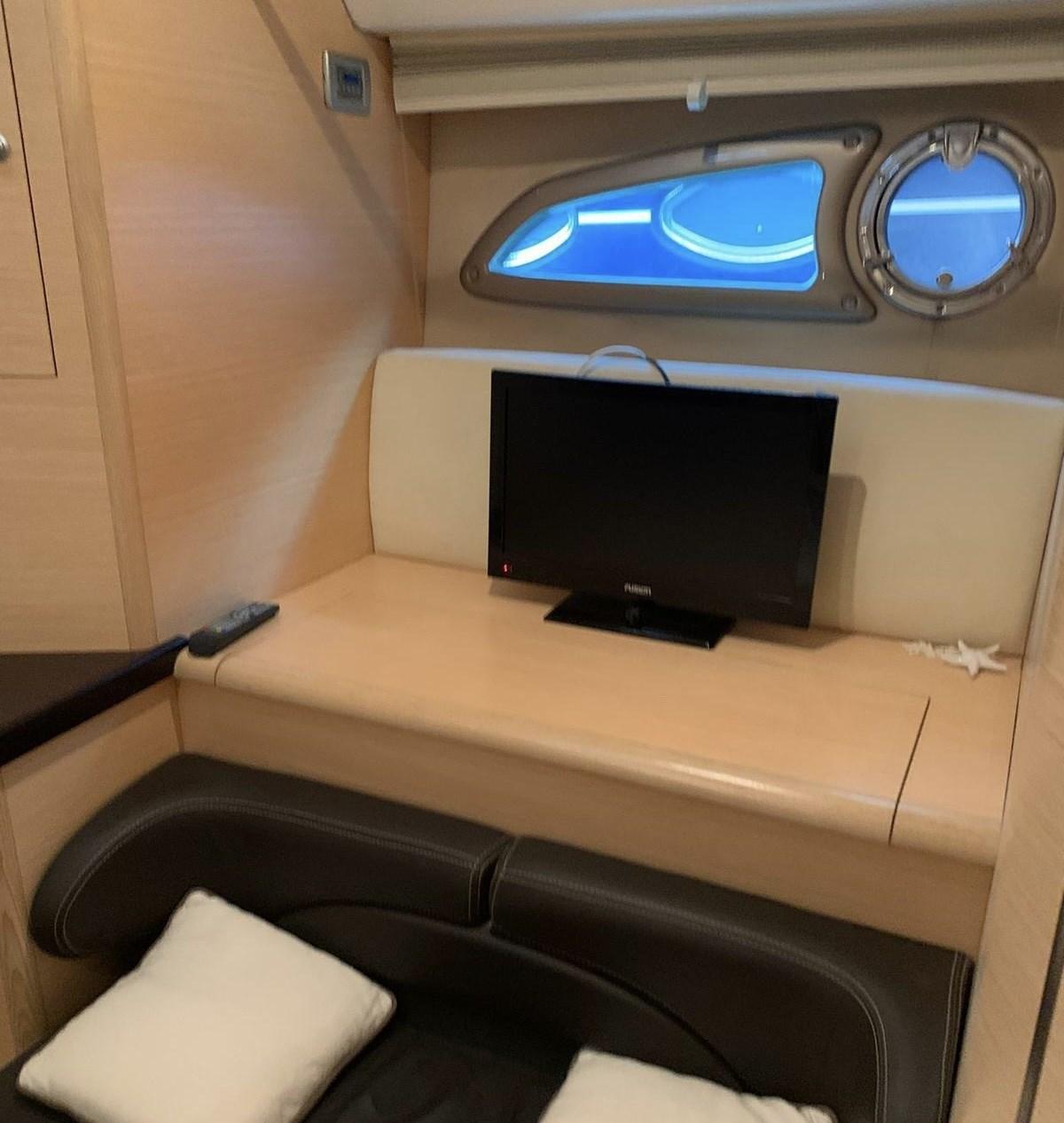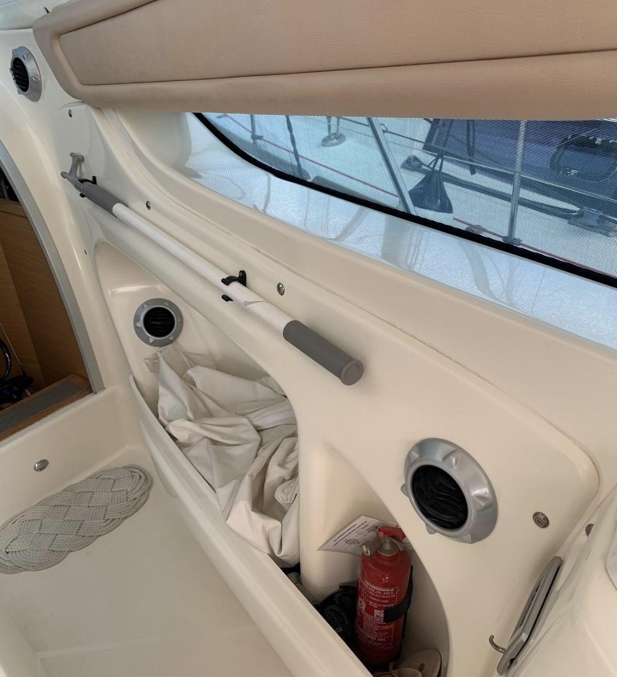 Alarme moteur, Alternateur, Ouverture du compartiment moteur électrique, Câble d’alimentation à quai, Couleur spéciale, Douche de cockpit, Flaps électriques, Hard top, Extincteur(s) fixe(s), Indicateurs de flaps, Lavabo dans le cockpit, Éclairage de courtoisie, Défenses, Passerelle, Plateforme arrière, Pompe de cale automatique, Pompe de cale manuelle, Cockpit en teck, Prise de quai, Guindeau électrique, Echelle de bain, table de cockpit, Annexe, Corne, Winch électrique avant.