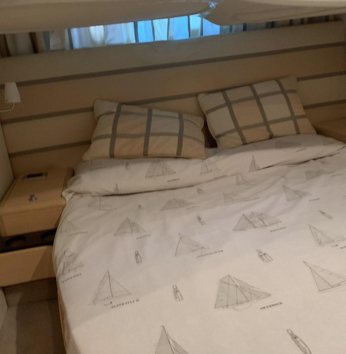 CABINE DU PROPRIÉTAIRE À L’AVANT AVEC LIT DOUBLE AVEC TOILETTES DÉDIÉES AVEC CABINE DE DOUCHE