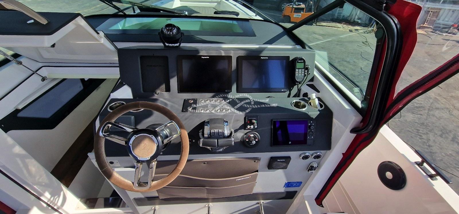 Indicateur d'angle de barre, Commande électrique, Compteur de chaîne, Sondeur pêche (3 D), Plotter GPS (2 x chart plotter touch raymarine), Radar (Doppler Raymarine), Siège copilote.