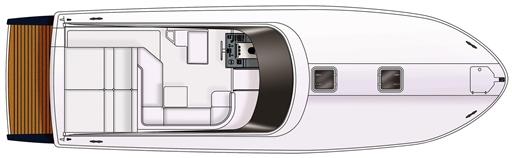 Alarme moteur, Alarme de pompe de cale, Eau sous pression, Système de vidange, Douche de cockpit, Flaps hydrauliques, Extincteur(s) fixe(s), Indicateurs de flaps, Lavabo dans le cockpit, Éclairage de courtoisie, Spots sous-marins, Passerelle, Plateforme arrière, Pompe de cale automatique, Cockpit en teck, Prise de quai, Connexion eau sous pression à quai, Guindeau électrique, Echelle de bain, table de cockpit, Corne.