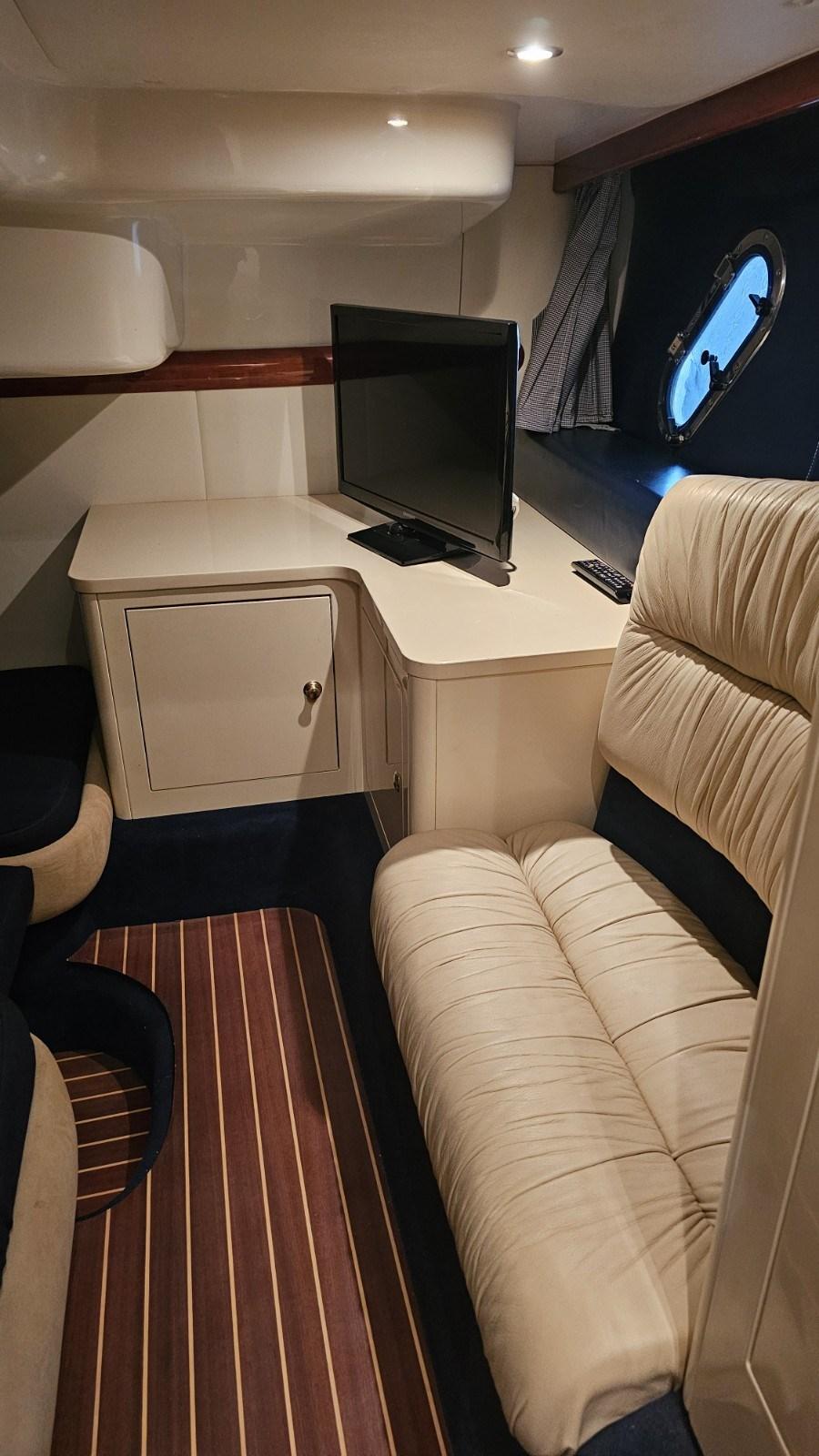 Propulseur d’étrave électrique - Climatisation Condaria - Groupe électrogène Fisher Panda 3,5 kW - Antenne TV - ANTENNE TV SAT - TV LCD - Garage à annexe - Meuble bar cockpit avec évier, plaque de cuisson électrique, réfrigérateur - plaque de cuisson à gaz deux brûleurs - réfrigérateur - micro-ondes - Passerelle rétractable électro-hydraulique Besenzoni - Enrouleur de câble de quai électrique - treuil d’amarrage double à l’arrière - coffre-fort.
