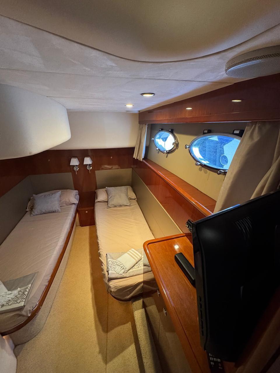 Travaux 2024/2025 : nouvelle instrumentation électronique (pont et flybridge) - nouveaux robinets moteur - nouveau hublot cabine bateau - révision du propulseur d’étrave et du propulseur de poupe - nouvelle isolation de la garniture de toit du compartiment moteur.