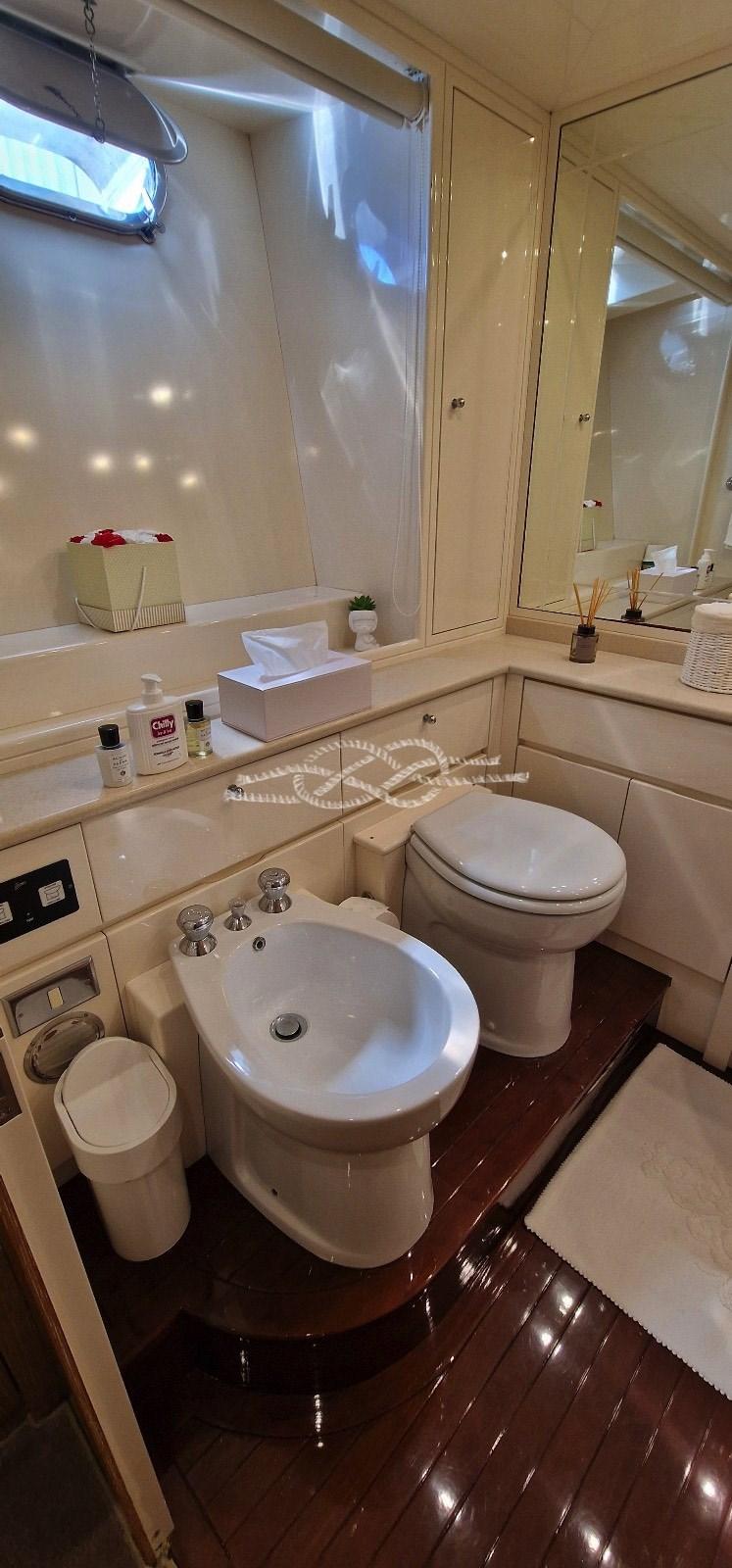 Alarme moteur, Eau sous pression, 16 Batteries, Système de vidange, Passavant en teck, Douche de cockpit, Double barre à roue, Phare de poursuite, Flaps hydrauliques, Grue de flybridge, Extincteur(s) fixe(s), Éclairage de courtoisie (LED), Passerelle (idraulica), Plateforme arrière, Porte latérale, Porte latérale, Cockpit en teck, Prise de quai, Connexion eau sous pression à quai, Rollbar, Guindeau électrique, Echelle de bain, Selles pour Annexe, table de cockpit, Annexe, Filières avec sortie latèrale, Corne, Winch électrique arrière.
