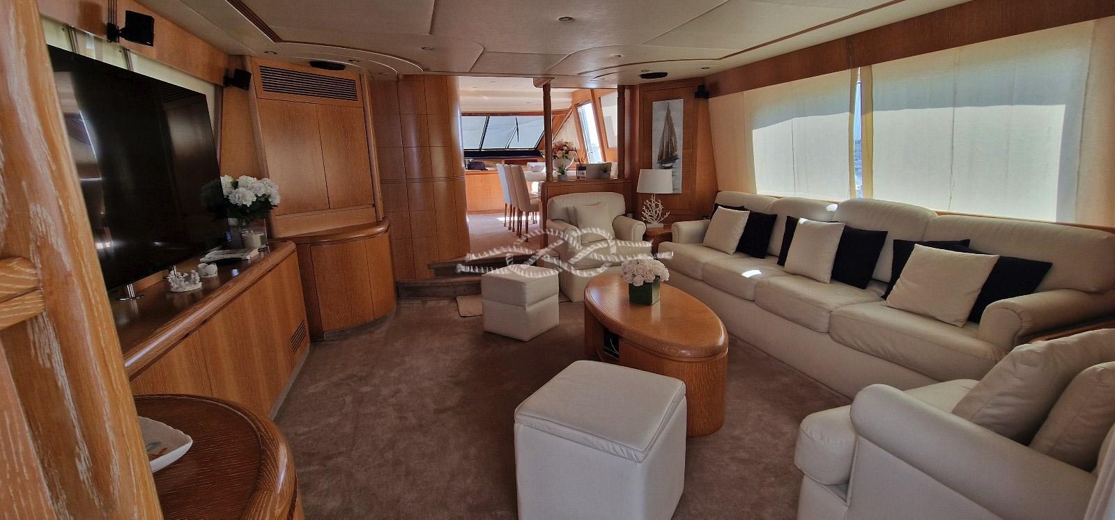 2017/18 : Entretien du moteur et du générateur - Nettoyage des échangeurs de chaleur - Alternateurs - Remplacement de toutes les prises d’eau de mer - Révision du chargeur de batterie - Révision des autoclaves - Révision de la climatisation - Révision des extincteurs et de la pompe à incendie - Installation de pompes de cale automatiques - Révision des générateurs - Révision du dessalinisateur - Lumières de courtoisie à LED - Installation de projecteurs sous-marins - Installation d’une écriture arrière rétroéclairée par LED - Polissage des pavois et de la superstructure - Remplacement du frigo de la cuisine - Remplacement du plan de travail en marbre de la cuisine - Interphone dans toutes les cabines - Nouveaux téléviseurs LCD dans le salon et toutes les cabines - Remplacement de toutes les vannes des toilettes - Remplacement du pare-brise en plexiglas - Sellerie du canapé du salon en cuir - Installation d’un purificateur d’eau et de gaz - Système stéréo alpin - Remplacement de l’électronique du tableau de bord et du flybridge - Peinture du tableau de bord - Révision du radeau - Remplacement des matelas - Remplacement des rideaux de cabine - Remplacement des rideaux de cabine Machine à laver - installation de portes en acier inoxydable et en plexiglas sur les escaliers arrière.