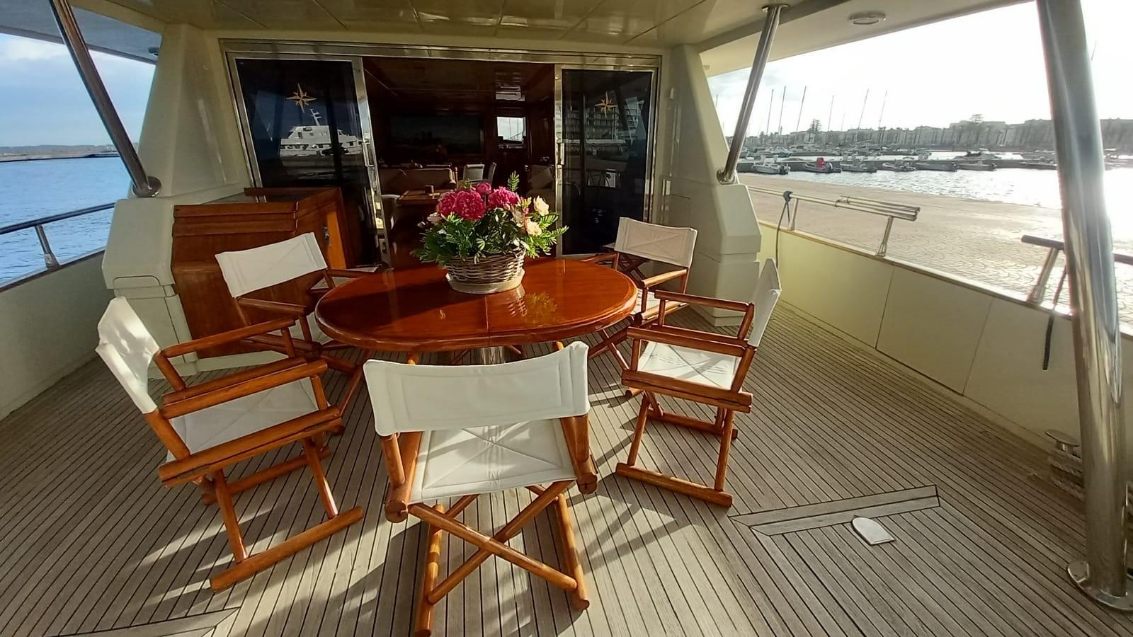 Travaux 2022 - 2023 : rénovation du flying bridge en teck - rénovation des canapés du flying bridge - nouveaux tissus d’ameublement extérieurs Sunbrella et éponges de housse de coussin - nouvelle moquette - nouveaux rideaux - rénovation des portes de cuisine - nouveaux appareils de cuisine (plaque de cuisson, four, réfrigérateur, hotte, lave-vaisselle) - entretien courant des moteurs et des générateurs - nouvelles batteries et moteurs de service - nouvelles batteries de propulseur d’étrave - nouveaux interrupteurs d’éclairage internes et externes - révision du piston des volets - nouveaux feux LED Sous l’eau - révision de la passerelle avec remplacement de la carte, de la pompe et des capteurs.