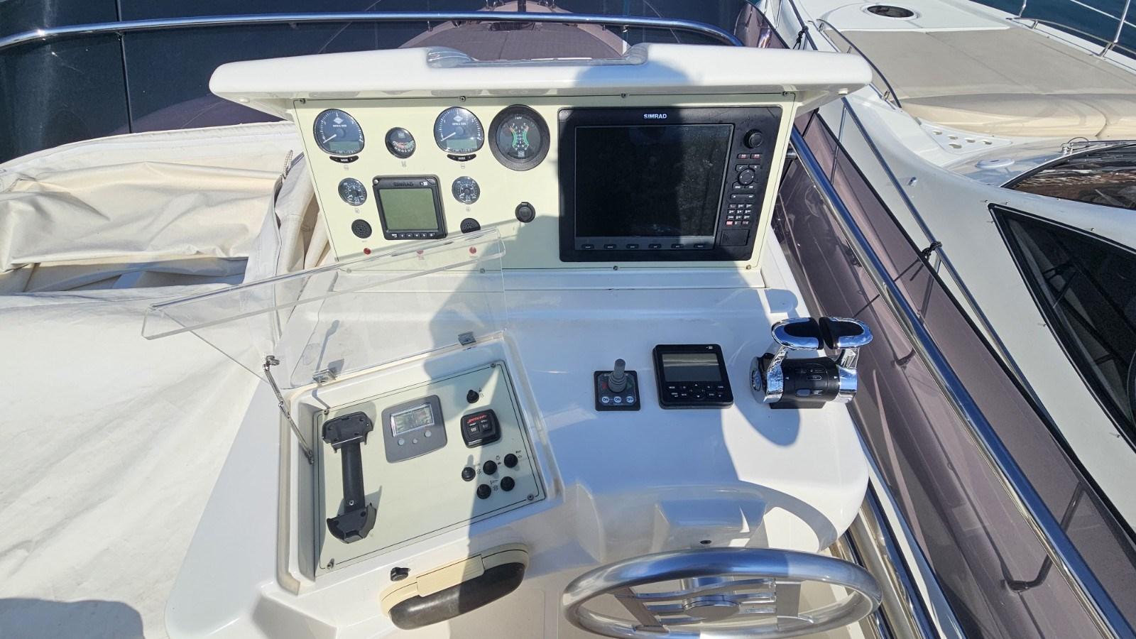 Alarme moteur, Alarme de pompe de cale, Eau sous pression, Douche de cockpit, Double barre à roue, Flaps hydrauliques, Extincteur(s) fixe(s), Indicateurs de flaps, Éclairage de courtoisie, Passerelle, Plateforme arrière, Porte latérale, Cockpit en teck, Prise de quai, Connexion eau sous pression à quai, Rollbar, Guindeau électrique, Echelle de bain, table de cockpit, Corne, Winch électrique arrière.