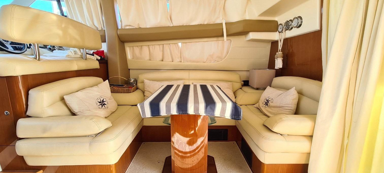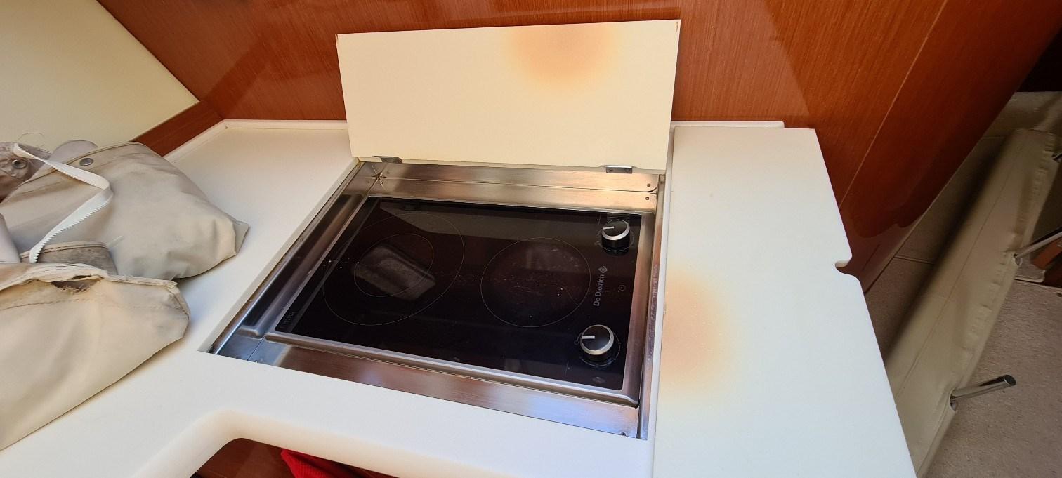 Alarme moteur, Alarme de pompe de cale, Eau sous pression, Douche de cockpit, Double barre à roue, Flaps hydrauliques, Passerelle, Porte latérale, Cockpit en teck, Prise de quai, Connexion eau sous pression à quai, Guindeau électrique, Echelle de bain, Corne.