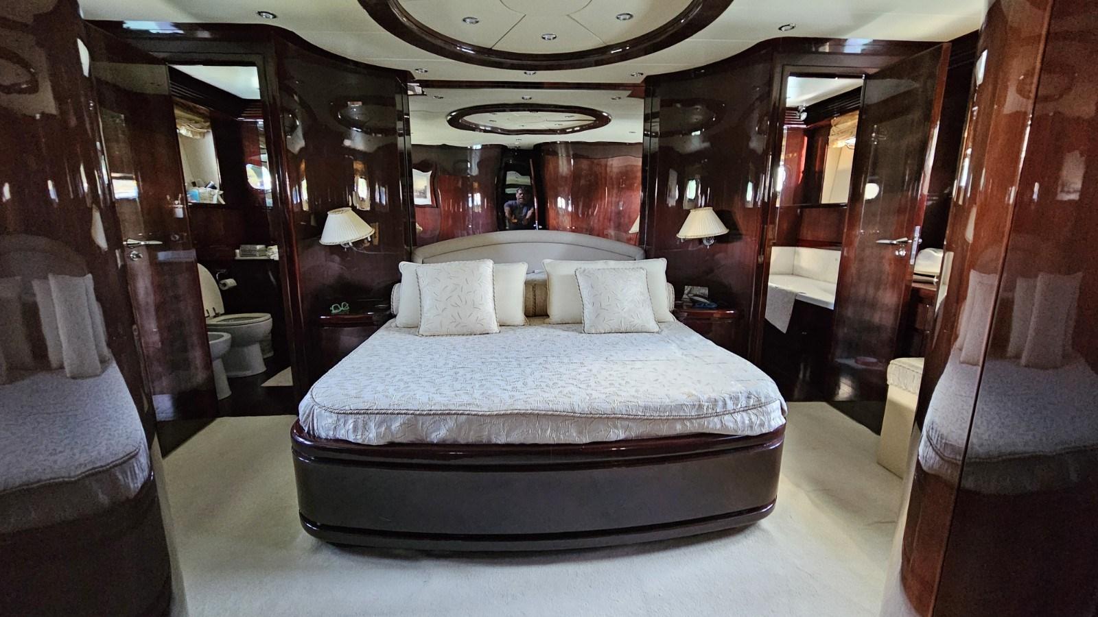 Cabine principale avec lit double et salle de bain double - Cabine VIP avec lit double et salle de bain - Cabine d’invités avec deux lits plats et salle de bain - Cabine d’invités avec deux lits plats et salle de bain.