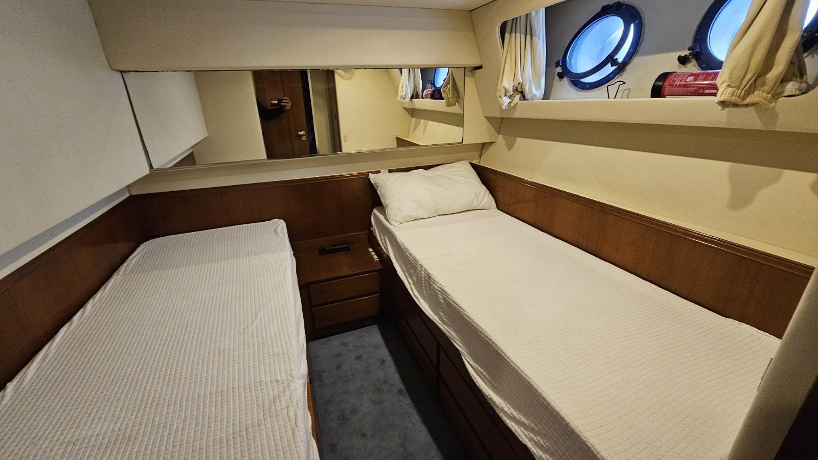 Logement de l’équipage à l’avant avec deux lits et salle de bain.
