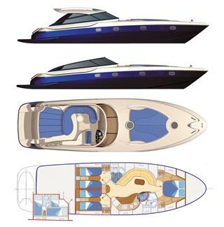 Alarme moteur, Alarme de pompe de cale, Ouverture du compartiment moteur électrique, Eau sous pression, 6 Batteries, Douche de cockpit, Propulseur d'étrave (Elettrica), Phare de poursuite, Flaps hydrauliques, Indicateurs de flaps, Lavage de chaine, Lavabo dans le cockpit, Éclairage de courtoisie, Passerelle (Idraulica), Plateforme arrière, Pompe de cale manuelle, Prise de quai, Onduleur, Rollbar, Guindeau électrique, Echelle de bain, table de cockpit, Corne, Winch électrique arrière.