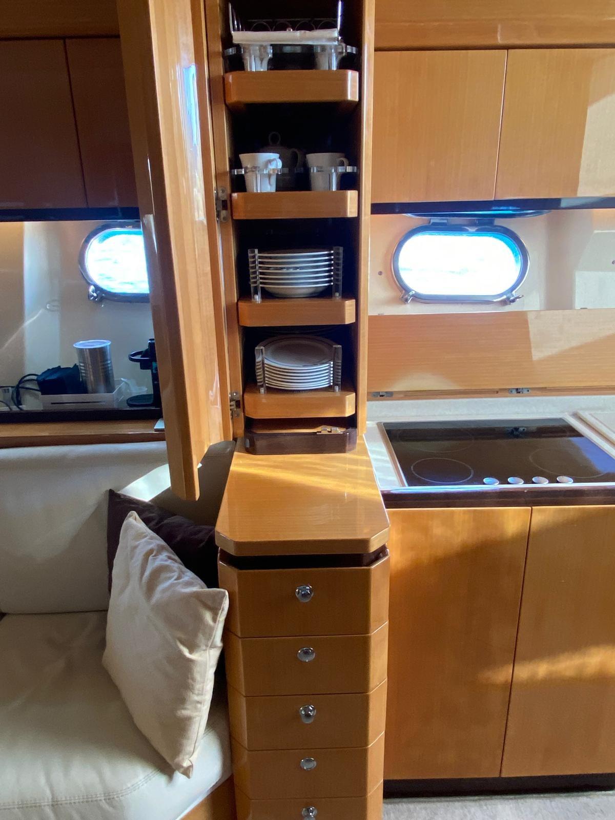 Propulseur d’étrave électrique - hard top rigide avec ouverture électrique - climatisation - Groupe électrogène Mase 12 kW - bar dans le cockpit avec réfrigérateur et plaque électrique deux brûleurs - antenne TV satellite - TV LCD - four micro-ondes combiné - plaque de cuisson électrique 4 feux - réfrigérateur - congélateur - passerelle électro-hydraulique escamotable.