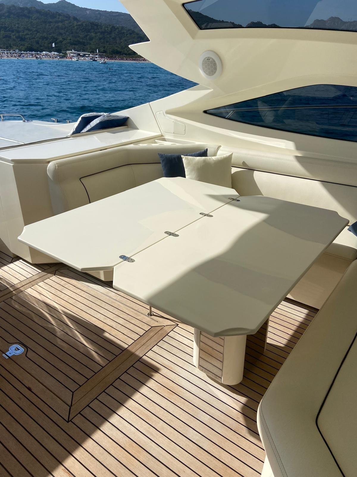 révision totale du système hydraulique avec remplacement du réservoir d’eaux noires et du réservoir d’eaux grises - remplacement des groupes hydrauliques - nouveaux moteurs de réfrigérateur et de congélateur - installation d’un système d’adoucisseur d’eau d’eau - remplacement du moteur de toit rigide - installation d’un deuxième traceur Raymarine Axiom - nouveaux auvents (été et hiver) - nouveaux coussins extérieurs - nouveaux téléviseurs LCD - nouveau système wifi.