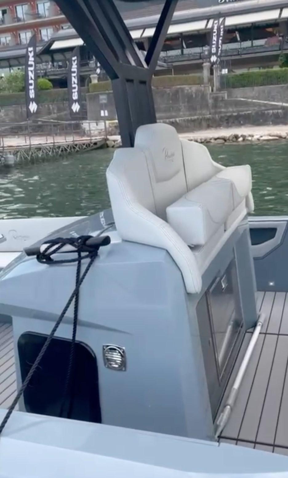 Joystick de manœuvre - propulseur d’étrave - meuble bar avec évier et plaque de cuisson électrique - frigo extérieur - T-Top - treuil guindeau - ancre encastrée dans le rouleau d’étrave - chaîne hi-fi Clarion - table de cockpit avec canapé en C transformable en solarium - climatisation - prise électrique à quai.