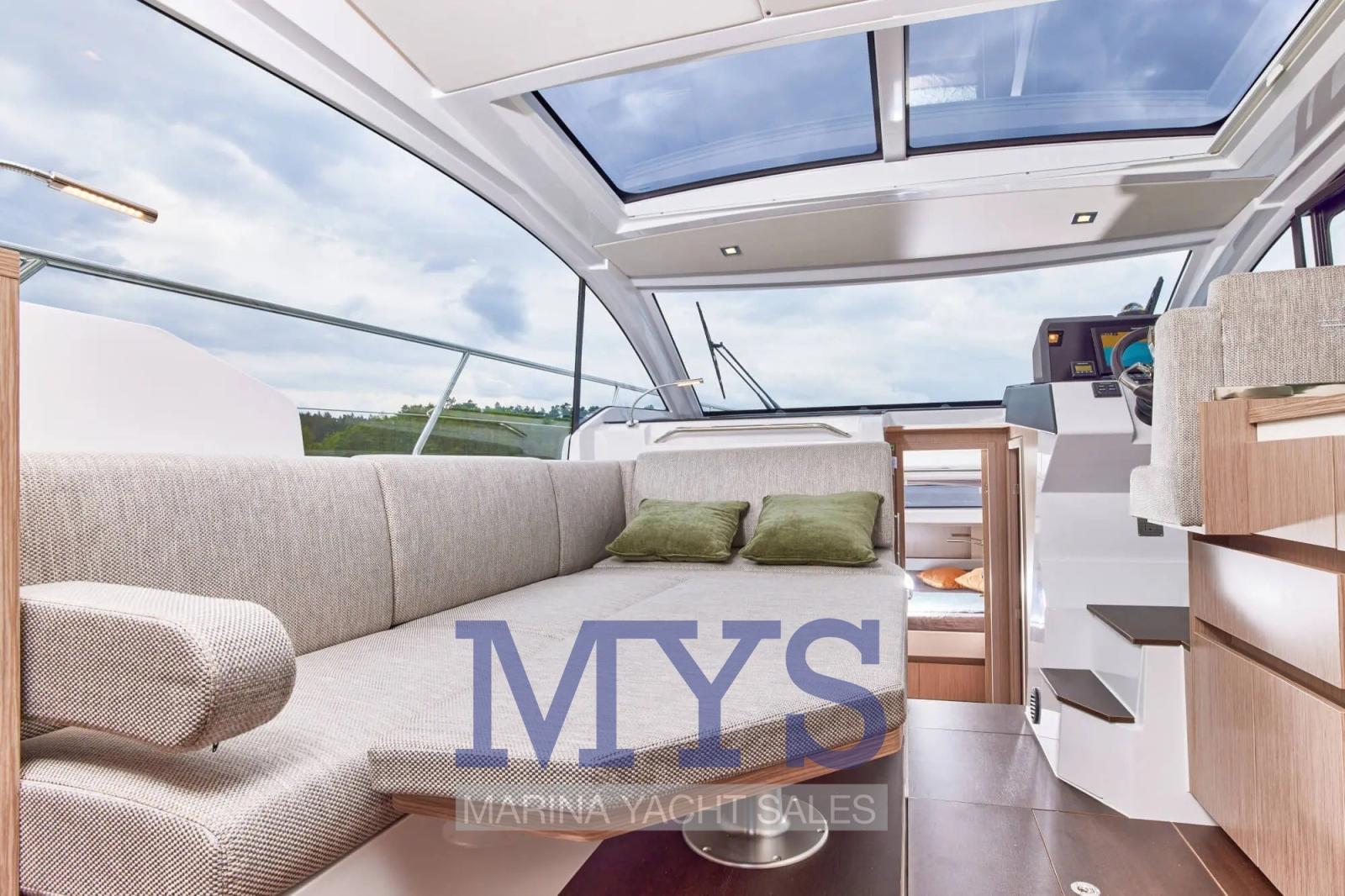 La Sealine C335 représente l’équilibre idéal entre lignes modernes, fonctionnalité et caractère sportif. Le design extérieur est épuré et dynamique, avec de grandes surfaces vitrées qui renforcent la lumière naturelle et la continuité visuelle entre l’intérieur et l’extérieur.