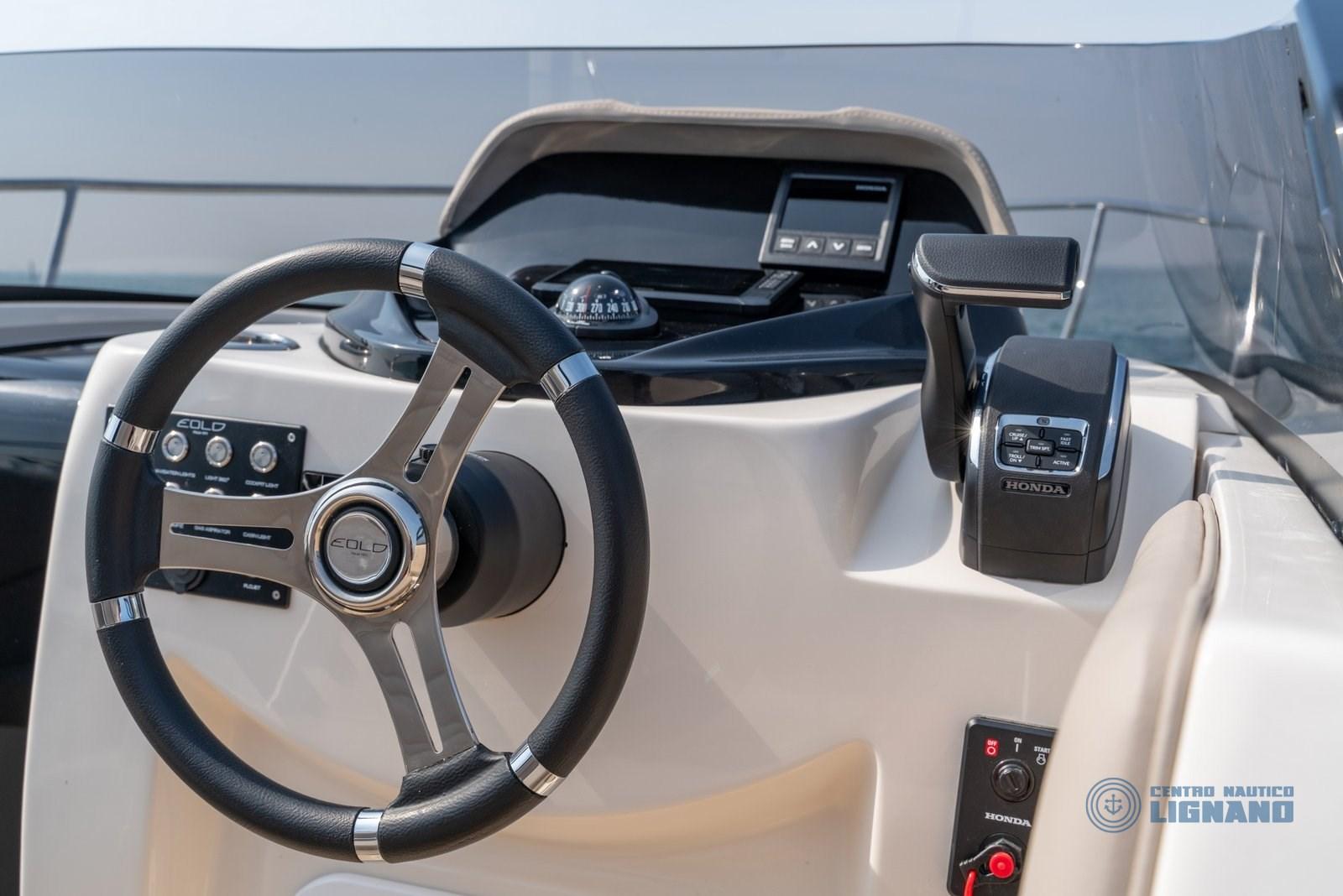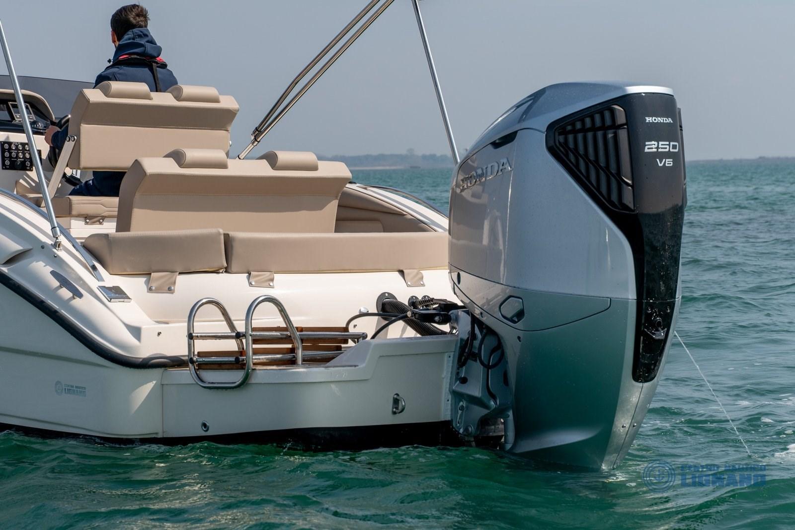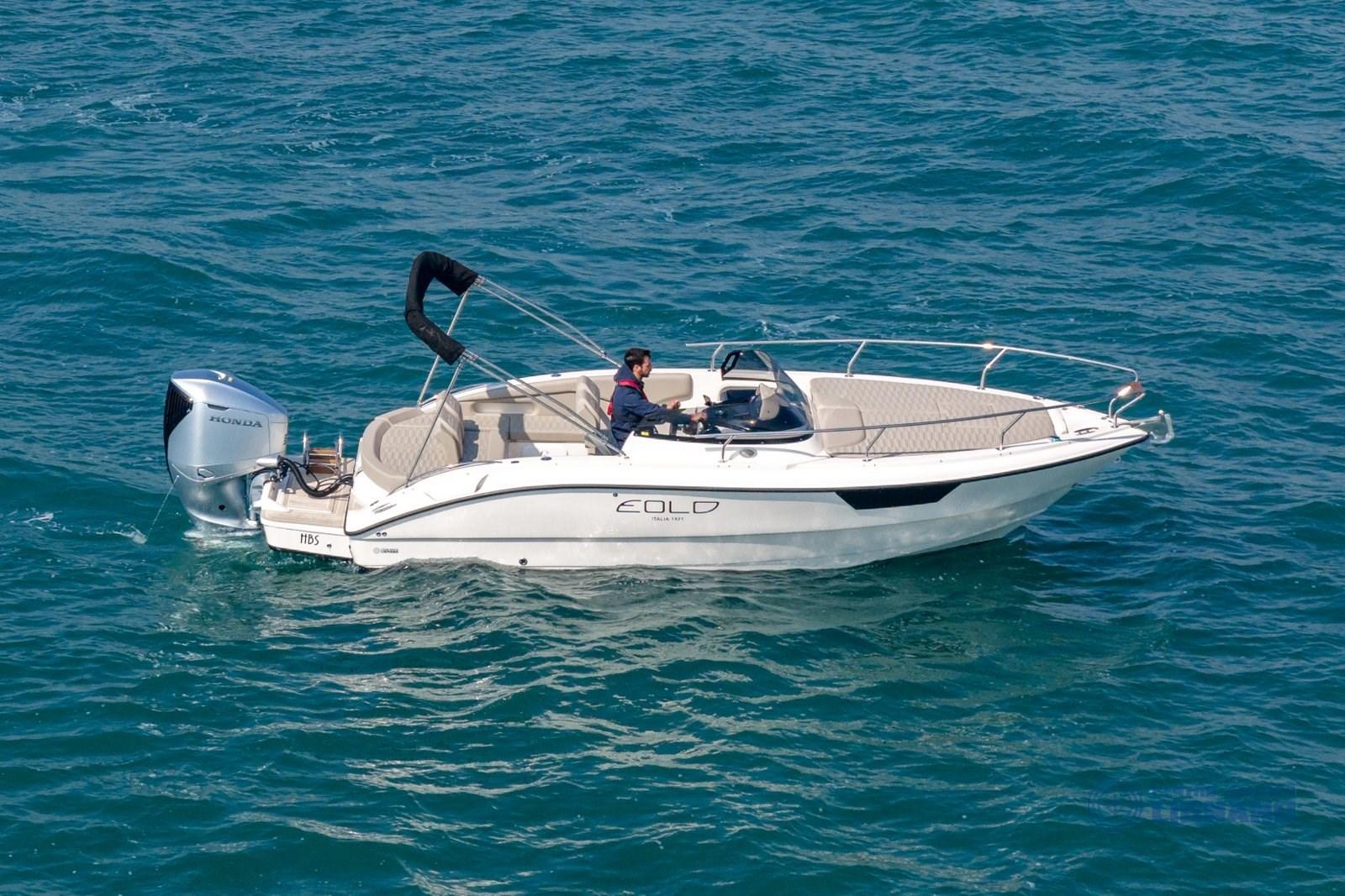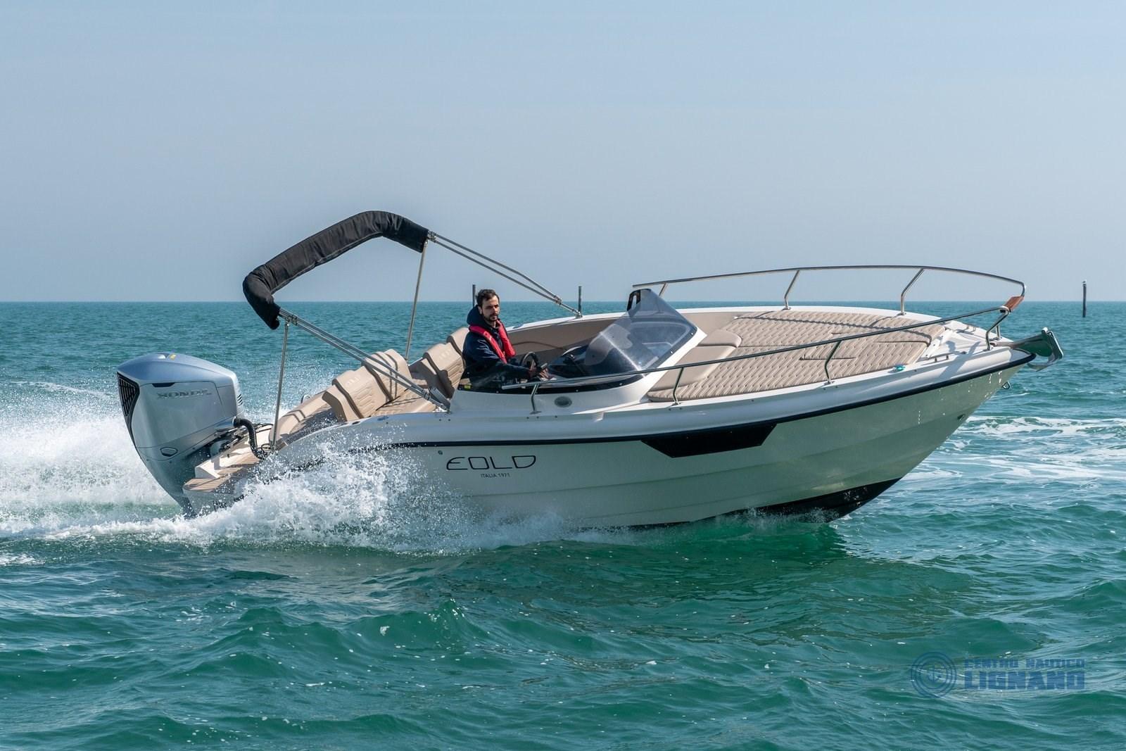 Eolo Marine 730 Day Hbs neuve 2026 immédiatement prête à être livrée au Centro Nautico Lignano, équipée d’un moteur Honda Marine BF250 V6, édition 2026, nouvelle couleur argent. Tout neuf sous garantie, caractéristiques techniques : longueur totale 7,30 mètres sur largeur 2,54 mètres, poids environ 1 600 kg, capacité passagers 7 + 1, catégorie CE-C, 2 lits. Couleur de coque blanche et coussins extérieurs beiges de luxe complets avec texture Lamborghini. Les accessoires comprenaient : réfrigérateur cockpit 49 lit, système d’eau et de douche 45 lit, auvent en acier inoxydable à 4 arcs, flexiteek de plateforme, marches et cockpit, fenêtres en plexiglas, ancre électrique et treuil à chaîne, toilettes électriques avec système d’eau noire, trappe, pont soleil d’avant, rampe de pare-brise, rouleau d’étrave, bornes, crochets de remorquage, rampe de proue, table avec pied, échelle, salle de bain en acier inoxydable, système de carburant 140 lit, système électrique complet avec boussole, klaxon, feux de navigation, lumière à 360°, prise électrique 12 V, pompe de cale. Un bateau complet neuf qui peut être complété avec d’autres accessoires.