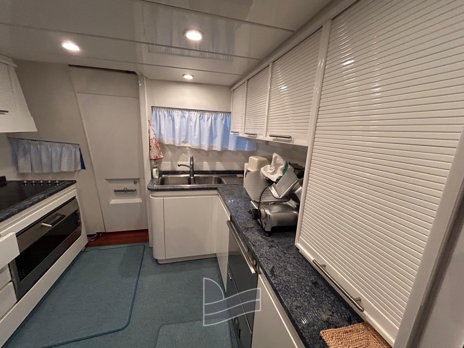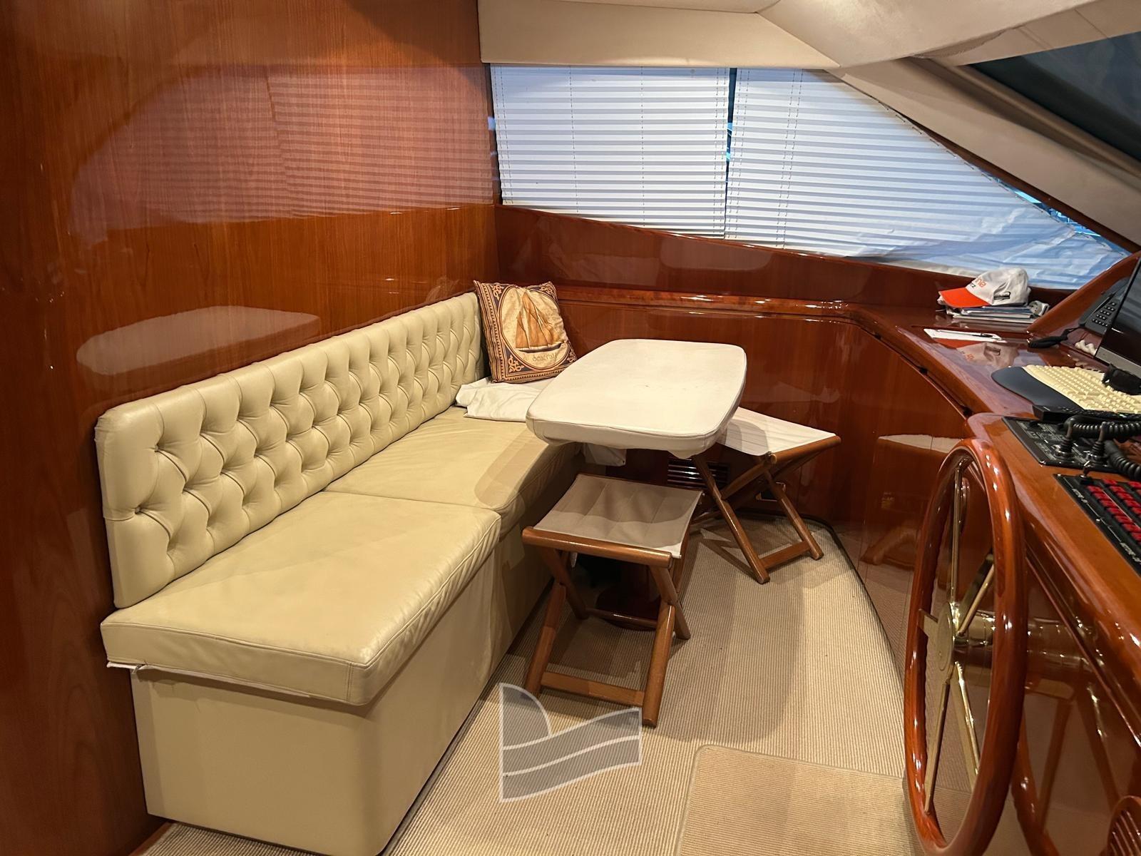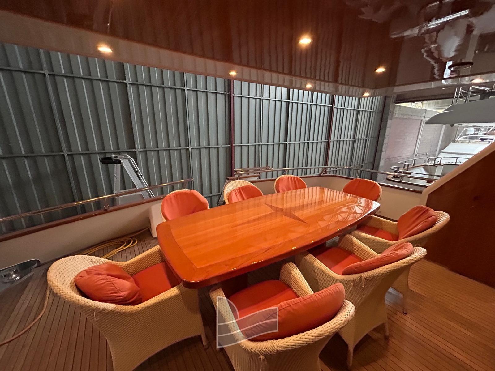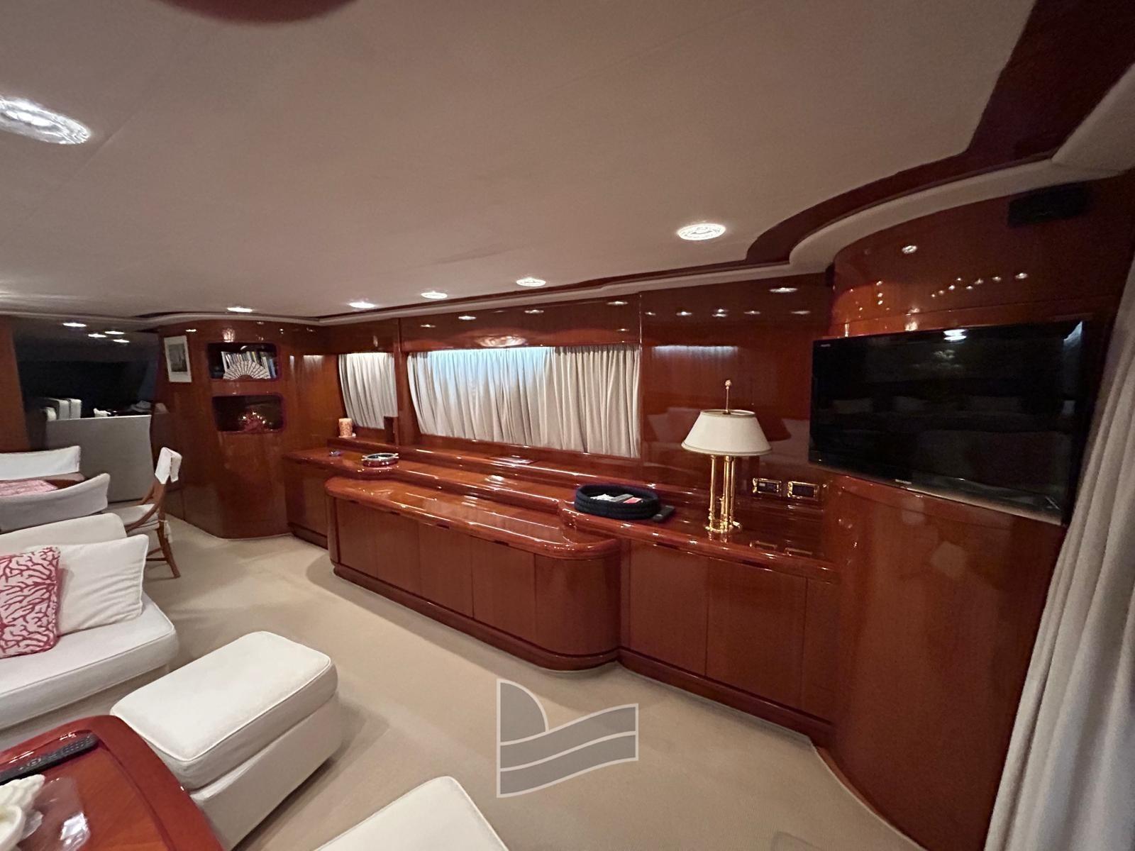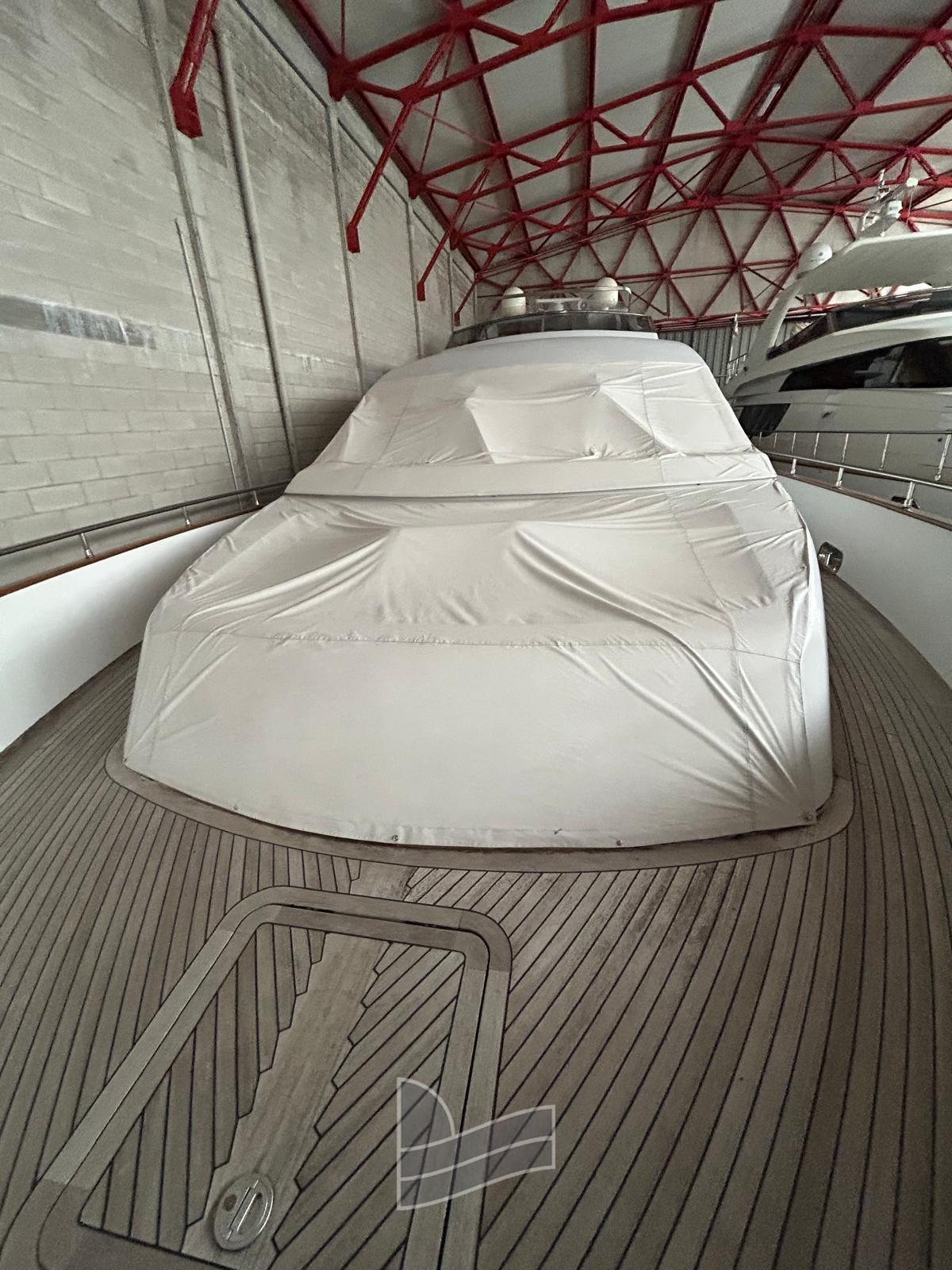 Alarme moteur, Eau sous pression, Passavant en teck, Douche de cockpit, Phare de poursuite, 2 Flaps hydrauliques, Extincteur(s) fixe(s), Lavage de chaine, Passerelle (idraulica a scomparsa), Plateforme arrière (di poppa in teak), Pompe de cale automatique, Pont en teck, Porte latérale, Cockpit en teck, Prise de quai, Onduleur, Guindeau électrique, Echelle de coupée, Echelle de bain, table de cockpit, Corne, Winch électrique arrière, Winch électrique avant.