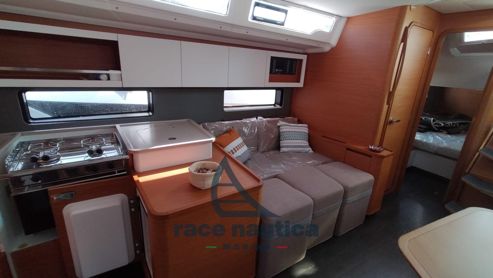 Dufour 44 – version 3 cabines + 2 salles de bain avec intérieur en teck – prête à la livraison. D’occasion, zéro kilométrage. Non immatriculé, utilisé uniquement comme bateau de démonstration. Version confort, éclairage intérieur LED + éclairage indirect, longue quille en fonte (2,25 m), moteur Volvo Penta 60 ch Sail Drive, grand-voile à lames complètes et foc auto-bordant en Dacron, mât standard, tireur d’étrave, haubans fixes, treuils drisses, banquettes et sièges arrière en teck naturel, feux de navigation LED, plaque à gaz à 3 brûleurs avec four, table à manger, échelle de bain en acier inoxydable avec rampes et marches en teck, support moteur, pompe de cale électrique automatique avec alarme, portails latéraux ouvrants sur les bords, volant recouvert de cuir, réservoirs d’eau noire, 4 treuils T50 à l’arrière, chenilles en génie sur le pont, gréement gennaker, deux écrans multifonctions Triton '2' (un à gauche et un à droite), VHF V20 B, Commande du pilote automatique NAC3, grand-voile et voile d’avant offshore incompatibles avec le replieur de grand-voile, treuil électrique T50 sur le pont côté bâbord, 2 hublots supplémentaires dans le cockpit pour la cabine arrière, bimini, bimini au-dessus de la zone de la barre, hotte d’évaporation avec rampe, protection avant en acier inoxydable, ancre avec chaîne et corde, 6 pare-boues, 3 amarres, chaîne de 50 m au lieu de corde, Des coussins classiques standards, un barbecue extérieur et un évier dans la zone arrière des sièges.