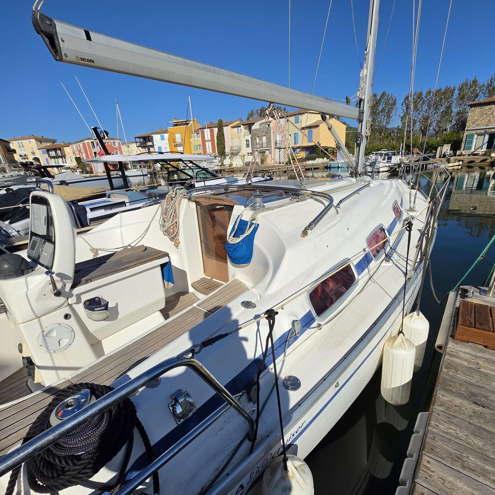 Bavaria 30 Cruiser chez Exclusive Yacht Agency :Bateau trés suivi. Bien équipé il est disponible immédiatement. Dossier factures. Equipements :Armement de sécurité 6 personnes côtier avec survie (à réviser), Version PTE 1,40 M, Grand voile enrouleur, Barre à roue, Génois sur enrouleur, Hale-Bas rigide Selden, 2 taquets maitre bau, 4 Winchs, Sac à drisses, Compas de route, Loch/Speedo Raymarine ST 60 +, Girouette/Anémomètre Raymarine ST 60 +, GPS/Lecteur de cartes/Sondeur Garmin Echomap 50 S, Chargeur de batteries + Système 220 V + Prise, 3 Batteries, Circuit 12 V + Prise, Panneau solaire 60 W, WC Marin manuel + Holding tank, Douche, Réchaud four gaz 3 feux, Frigo, Eau chaude 12/220 V, Cockpit latté teck, Capote large, Table de cockpit, Taud d'hiver, Guindeau électrique + 2 nde commande, Propulseur d'étrave Side Power, Douchette cockpit chaud/froid, Support moteur HB Starboard, Kit mouillage, Kit amarrage etc..