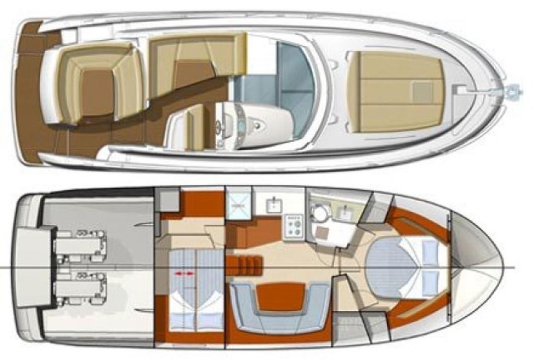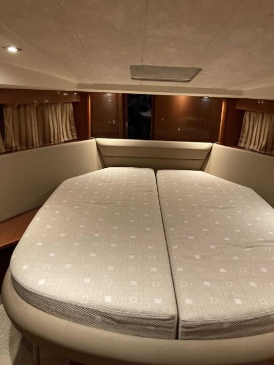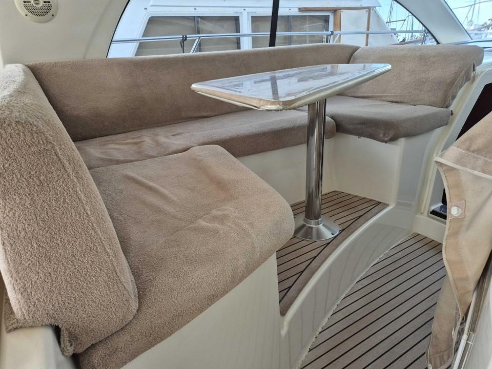 L'entretien est à jour et réalisé par des professionnels, les factures sont disponibles. Ce navire très bien équipé propose deux salons de cockpit, un garage à annexe et six couchages. La Prestige 38S possède un carré volumineux aux boiseries claires, face à une cuisine en L, et une cabine avant immense avec un dressing et un accès privatif à la salle d'eau.