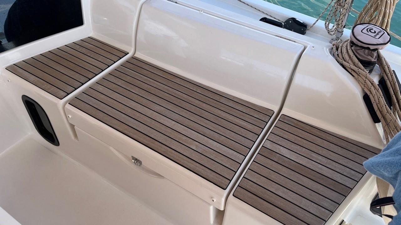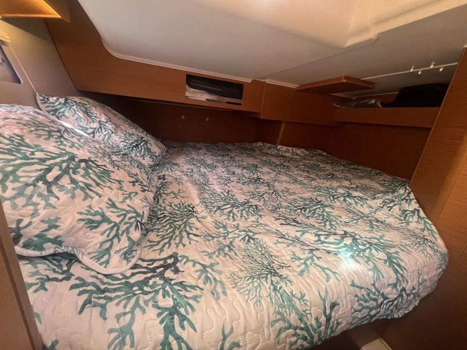 L’intérieur, lumineux et spacieux, offre un aménagement raffiné et fonctionnel, parfait pour des croisières en famille ou entre amis. Le cockpit généreux invite à la détente, tandis que l’équipement de navigation complet vous assure des traversées en toute sécurité.