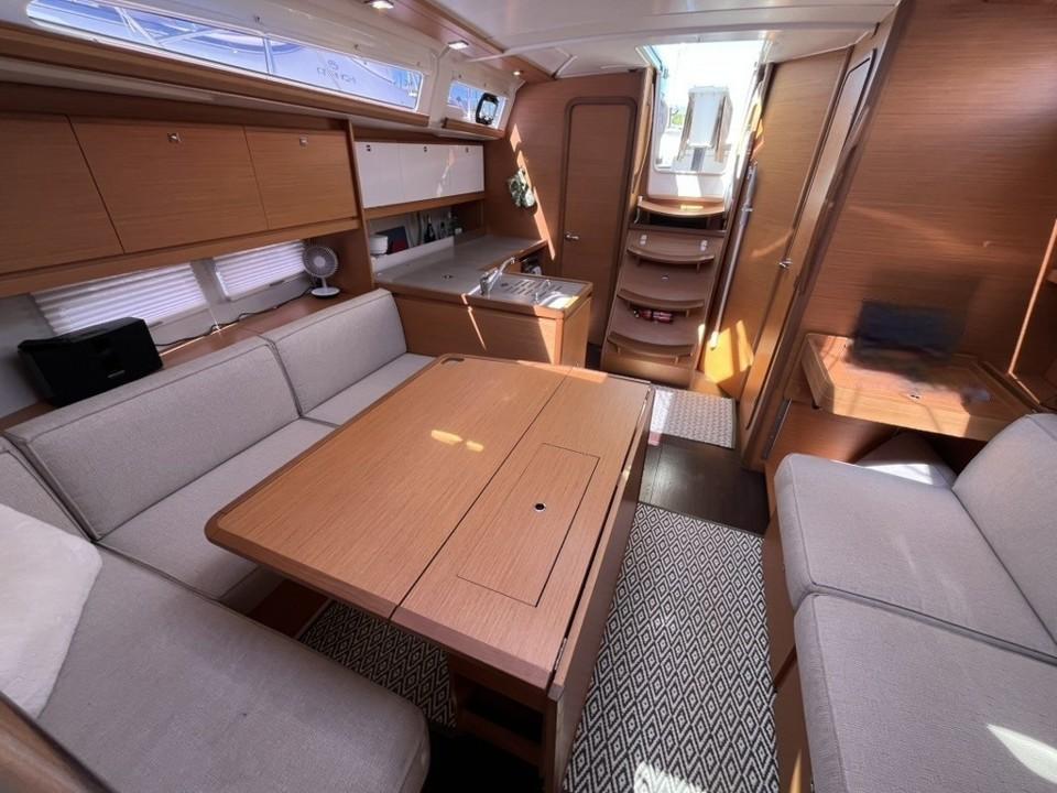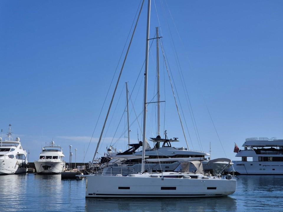 Dufour 390, millésime 2022, dans un état exceptionnel, prêt à naviguer. Ce voilier moderne, élégant et performant est idéal pour les croisières côtières comme hauturières, offrant un confort remarquable à bord et une grande facilité de manœuvre.