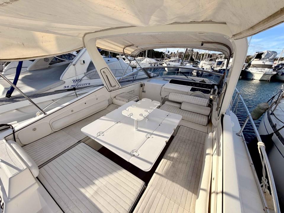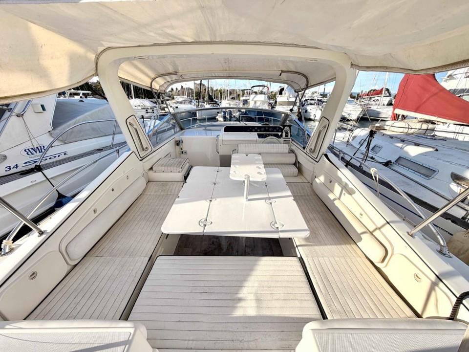 Ce bateau offre un excellent compromis entre plaisir de navigation et confort à bord. Son cockpit spacieux et convivial, équipé d’une table sur mesure avec porte-verres, est idéal pour les journées en mer et les moments de partage.