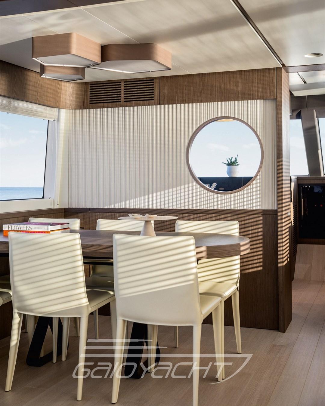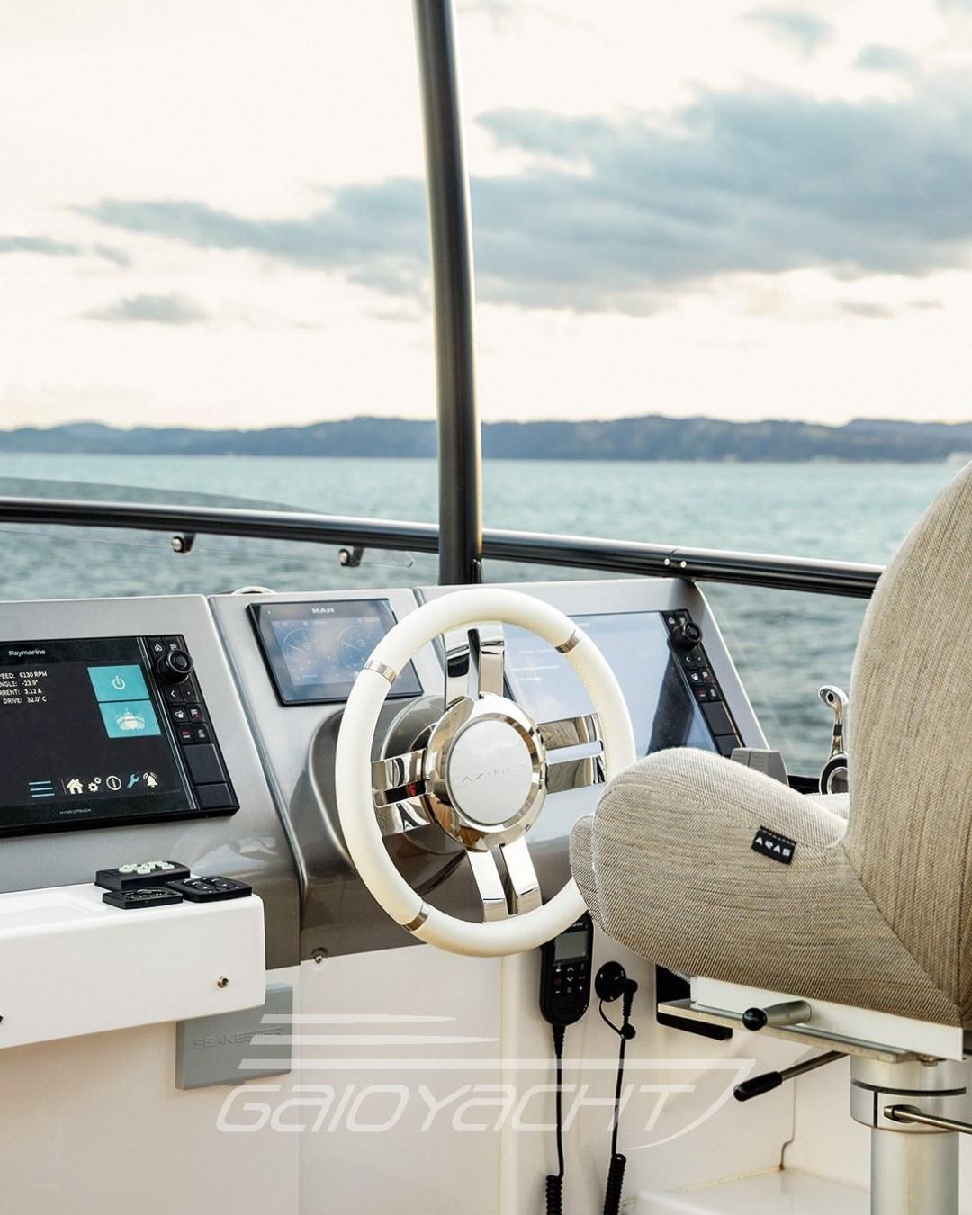 Contrôle automatique de l’assiette ; Mât; Feux de manœuvre ; Mobile avec TV 43'' ; lucu Forfait de luxe pour l’extérieur et l’intérieur ; Table d’étrave avec système électrique de montée et de descente ; Plancher de mouche en teck ; Rideau d’intimité dans le cockpit ; Bidet dans la salle de bain du propriétaire ; Quatrième cabine en version 2 lits ; Chaises pour table à manger ; stores vénitiens dans le salon ; Plancher du salon en bois ; But de Remarine.
