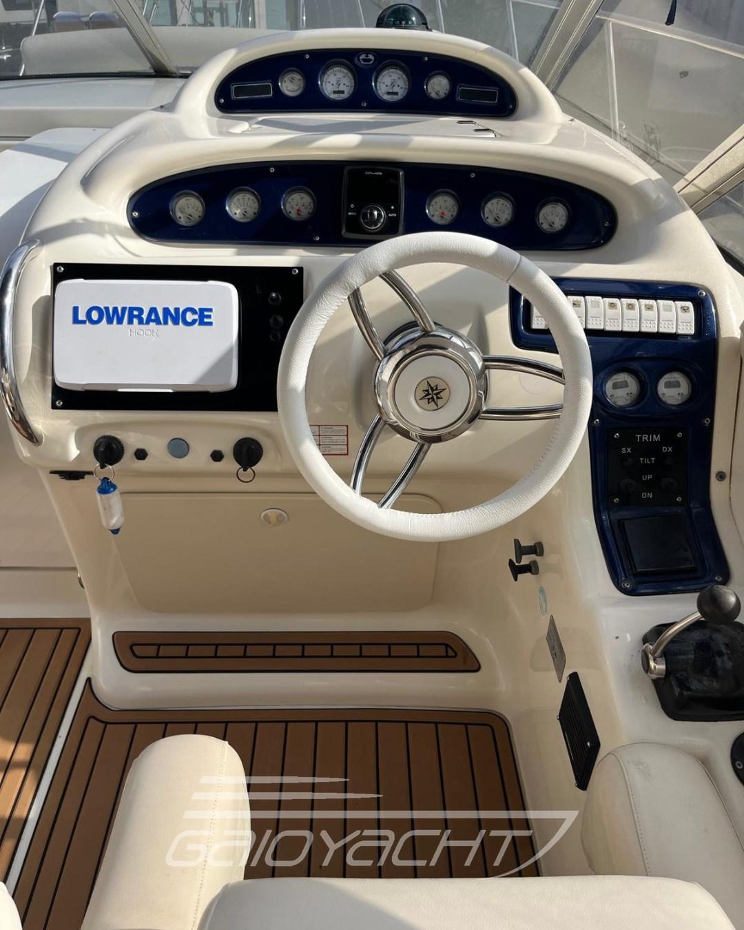 Plate-forme allongée de 70 cm ; ZipWake 2023 (intercepteurs/volets automatiques) ; Accélérateurs électriques Evc ; Moteurs et pieds remis à neuf année 2022-20024 ; Réservoir d’entretien année 2022 ; Révision de la turbine année 2022 ; Entretien des pompes Bosh et des pompes à eau année 2023 ; coque à zéro en 2024 ; Révision du groupe électrogène Paguro 4.5kw au cours de l’année 2022 ; Lowrance combo HDS ; Isolateur galvanique 35AH ; Tuyaux d’alimentation remplacés en 2023 ; Table basse extensible ; Armoire extérieure avec évier escamotable ; Kit de conversion en dinette dans la chambre d’un propriétaire, de deux lits séparés à un lit double ; Wi-Fi;