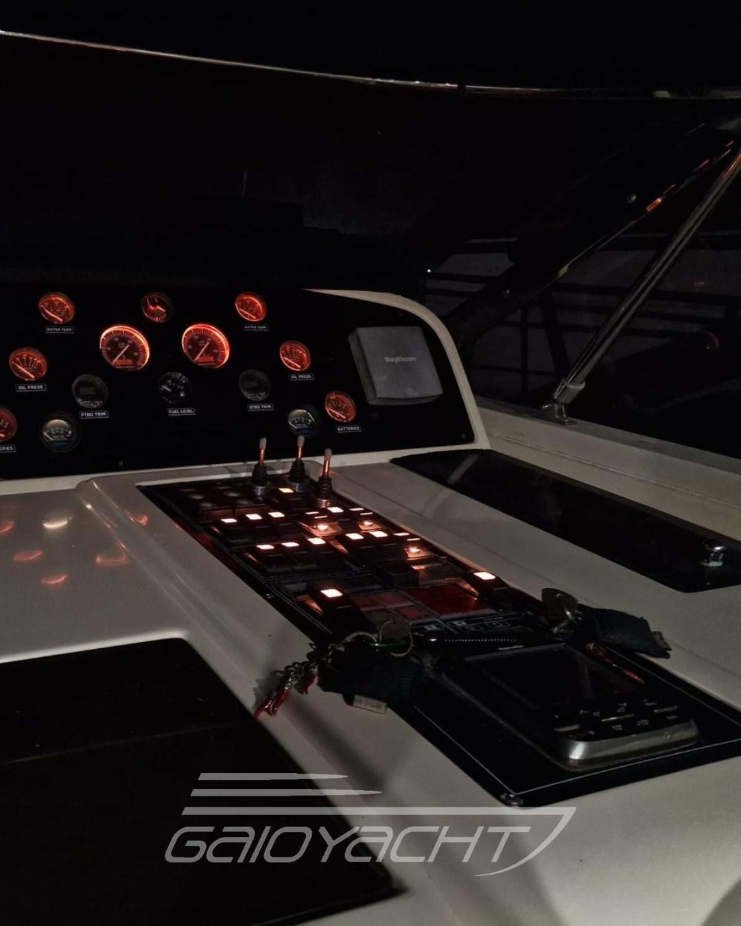 Volets; Menottes électriques ; Instrumentation embarquée Volvo Penta complète ; kitchenette à induction externe (cockpit) avec deux brûleurs et évier pratique ; Armoire de cuisine externe (cockpit) ; Réfrigérateur double ; Plaque de cuisine dinette à induction avec deux brûleurs ; système de télévision dans le cockpit et avec télévision dans la chambre du propriétaire ; Radio Hi-Fi.
