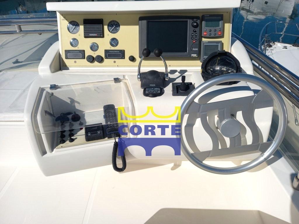 Indicateur d'angle de barre, Commande électrique, 2 Moniteur (Volvo Penta), GPS (Geonav), Pilote automatique (Raymarine), Lecteur de cartes (Geonav), Radio VHF (Shipmate), Siège copilote.