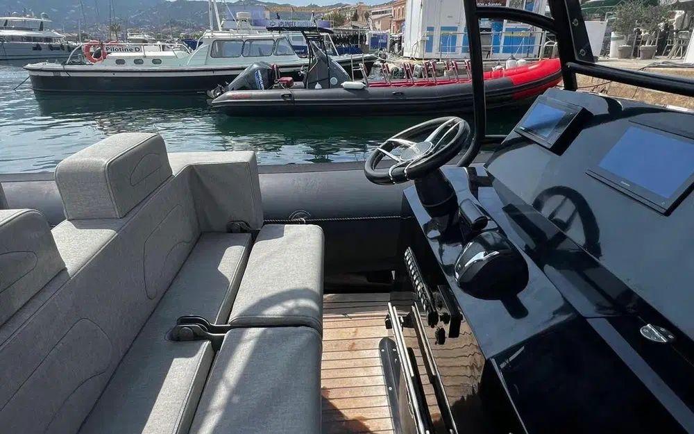 Profitez d’un espace extérieur particulièrement agréable, équipé d’un cockpit en teck, d’un bain de soleil avant, d’un t-top pour l’ombre ainsi qu’une douchette eau douce pour un confort optimal après la baignade. Les coffres de rangement et les accessoires de navigation rendent la vie à bord plus pratique.
