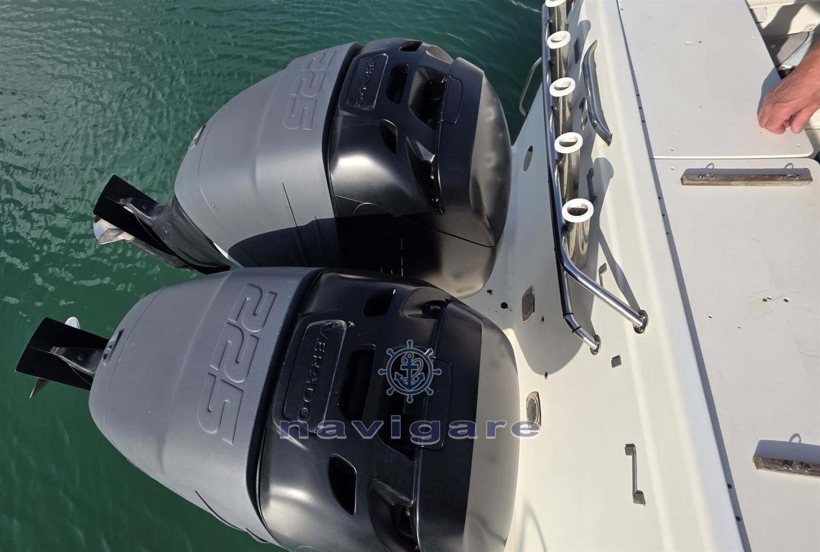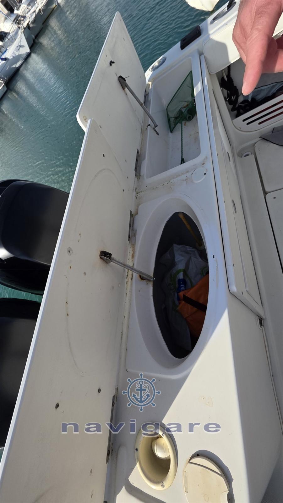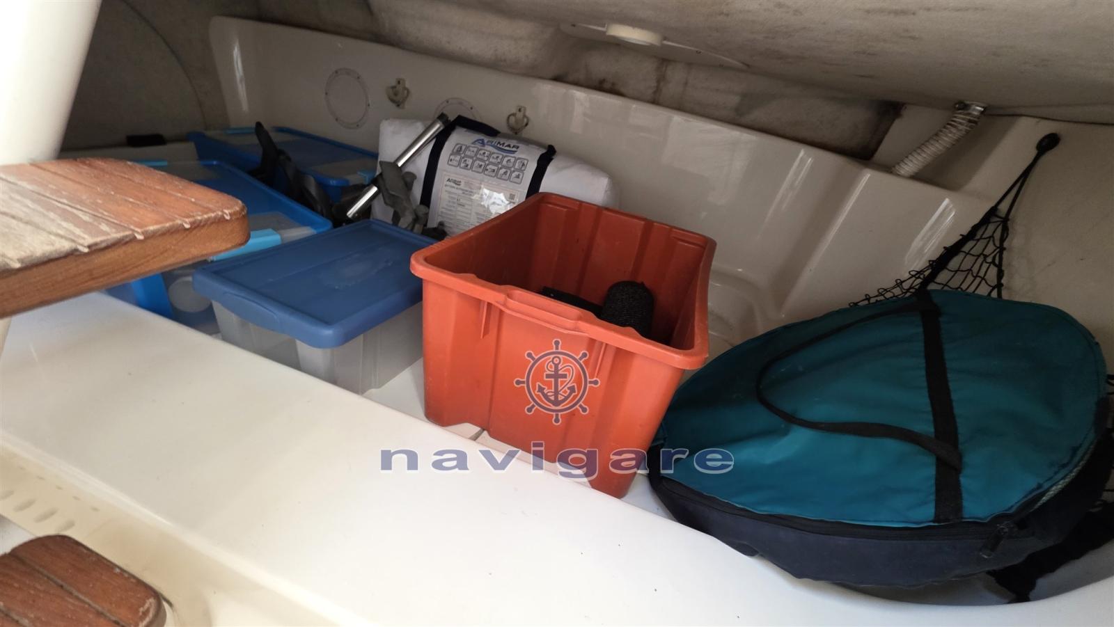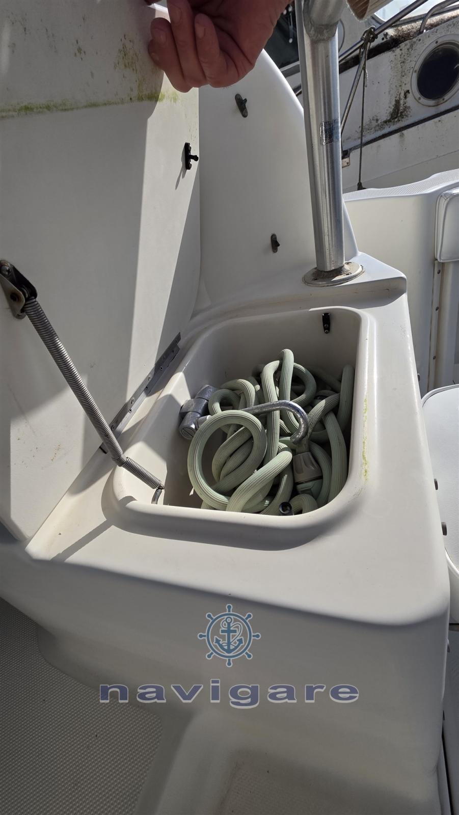 Alarme moteur, 3 Batteries (+ PACCO BATTERIE MINNKOTA), Flaps hydrauliques (N°2), Lavabo dans le cockpit, Éclairage de courtoisie, Pompe de cale automatique, Pompe de cale manuelle, Pompe à Eau de Mer, Prise de quai, Guindeau électrique, Echelle de bain, T-Top.